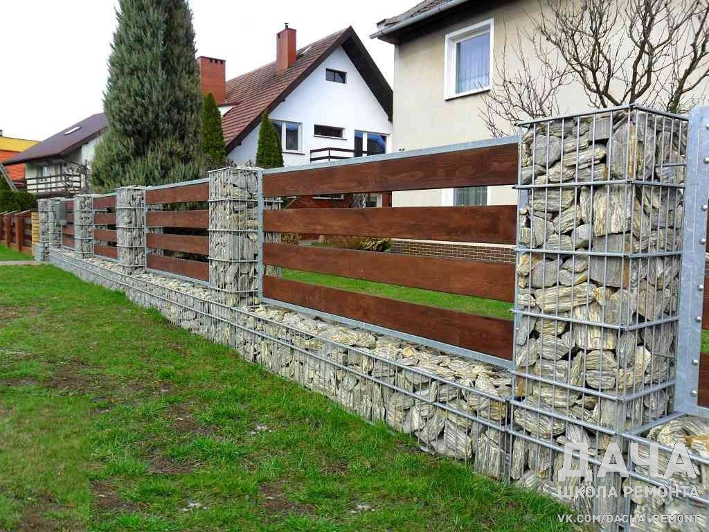 L'escrime est un élément important dans l'aménagement d'un chalet d'été. Construire une clôture de gabions, c'est donner à votre propriété originalité et originalité. Une telle construction cache non seulement de manière fiable le territoire des regards indiscrets, mais est également durable, économique en termes de coûts de matériaux.