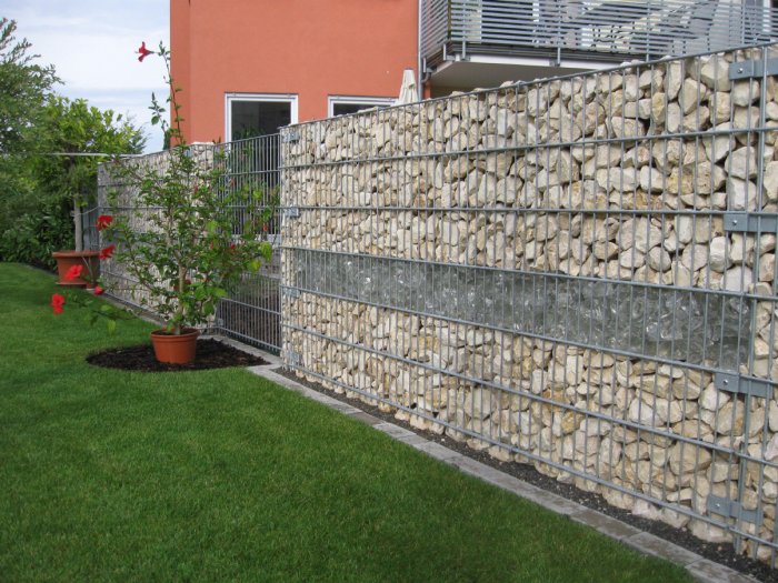 Une clôture en gabion correctement exécutée est une excellente idée pour une clôture de toute taille. Avec «l'âge», la structure ne fait que se renforcer - les plantes s'y déposent, fixant les pierres avec leurs racines. La clôture semble solide - elle ressemble à distance à une ancienne forteresse. Lorsque vous faites la construction de vos propres mains, la clôture ne sortira pas du tout chère.