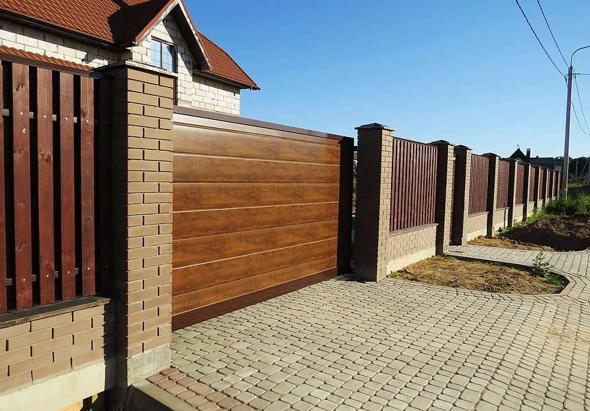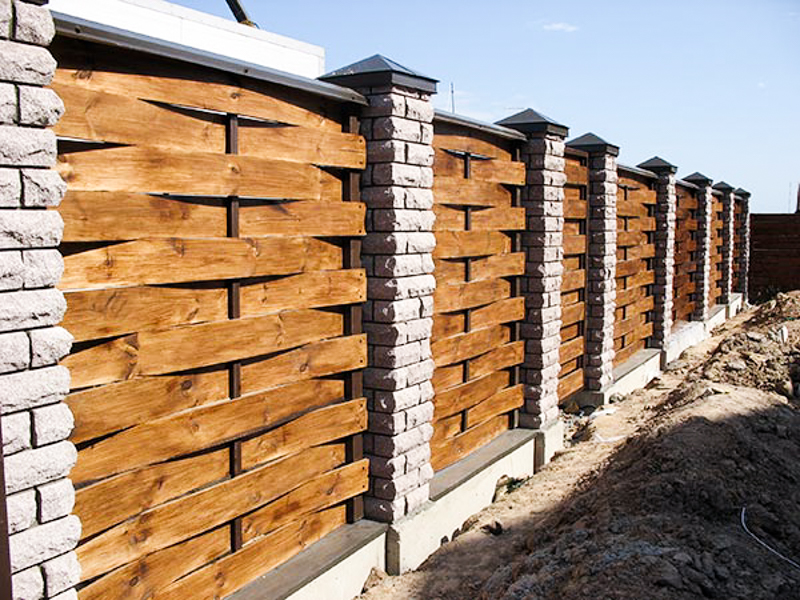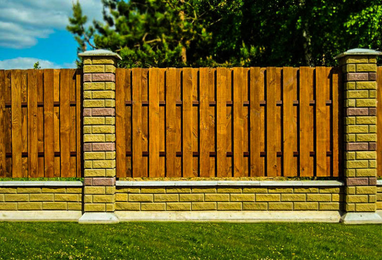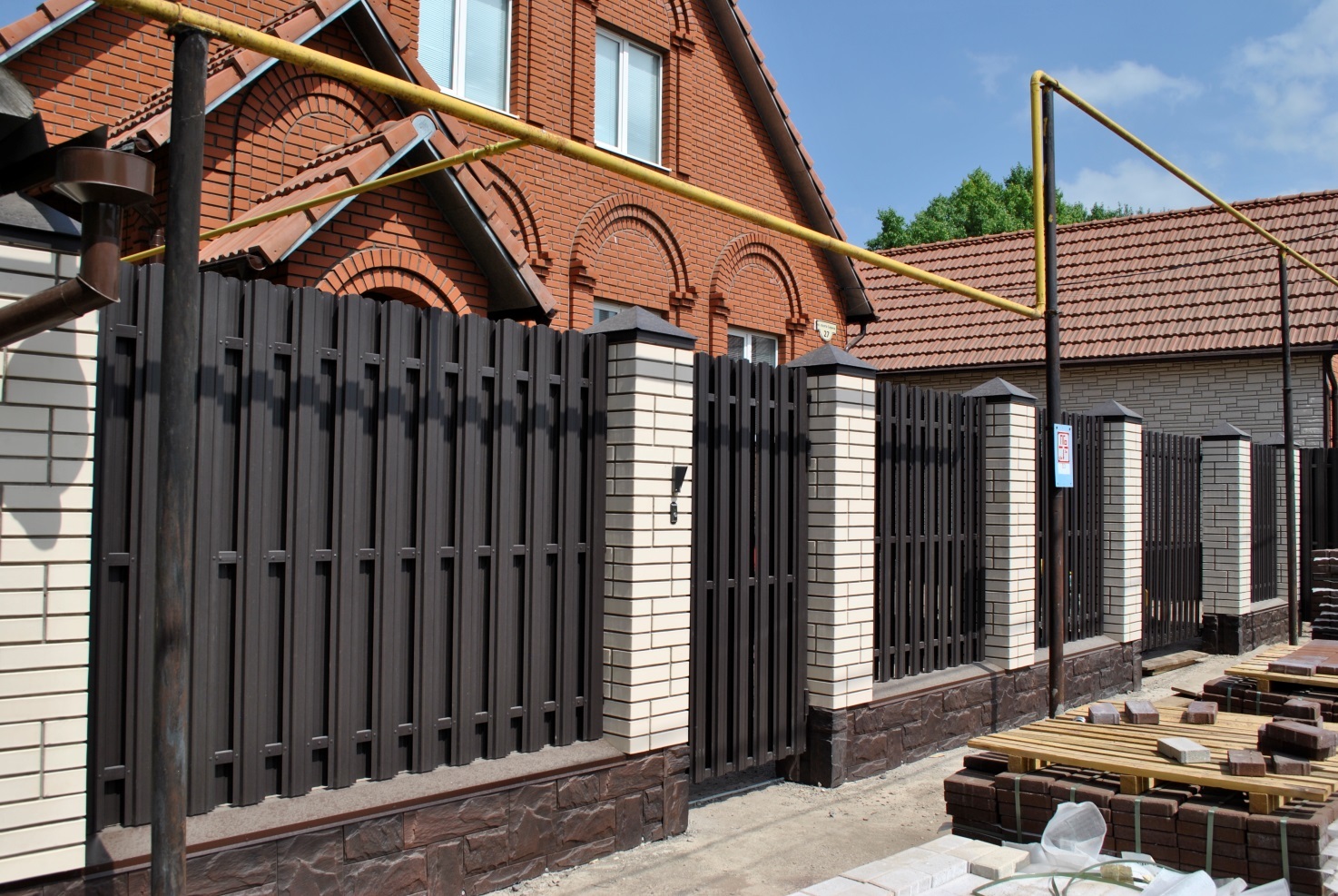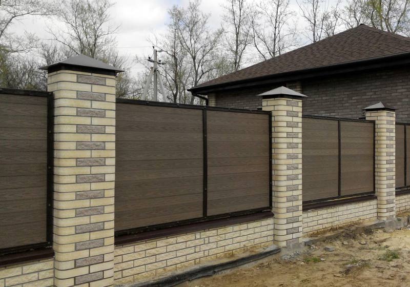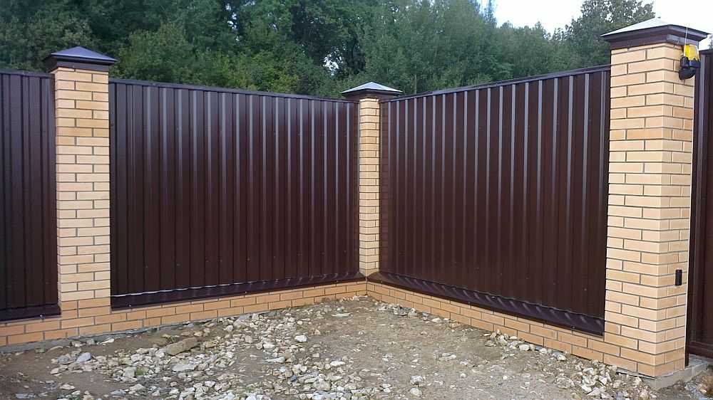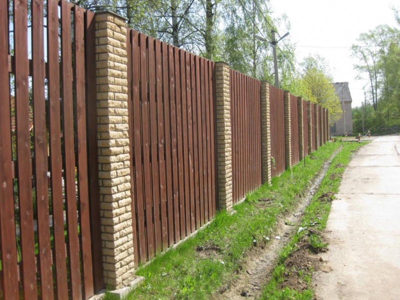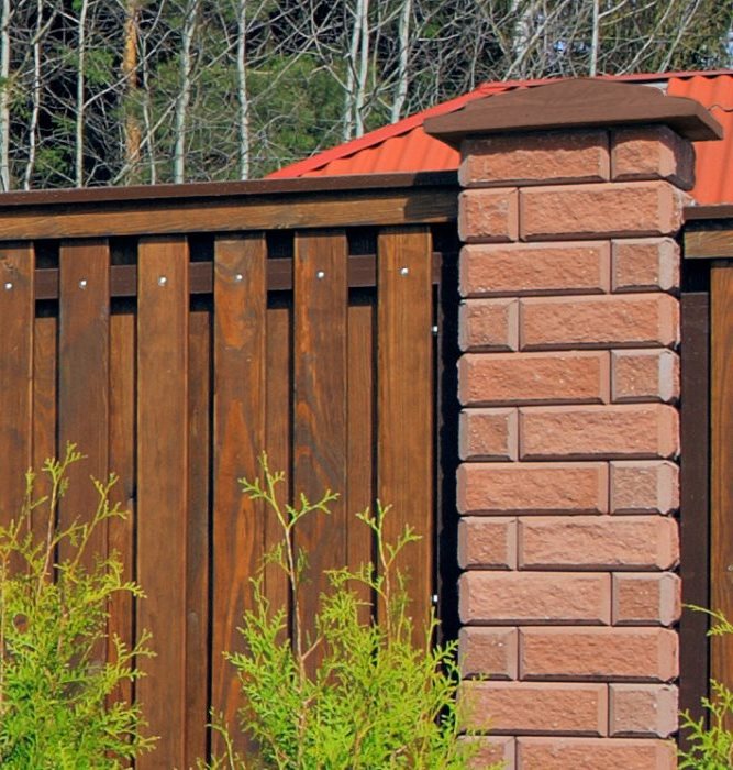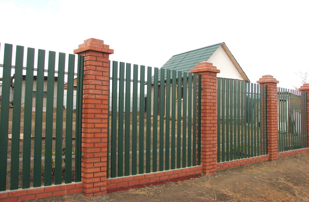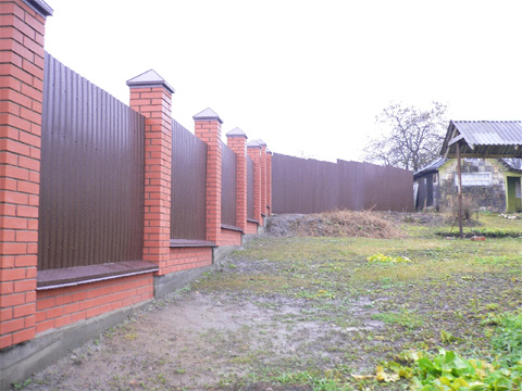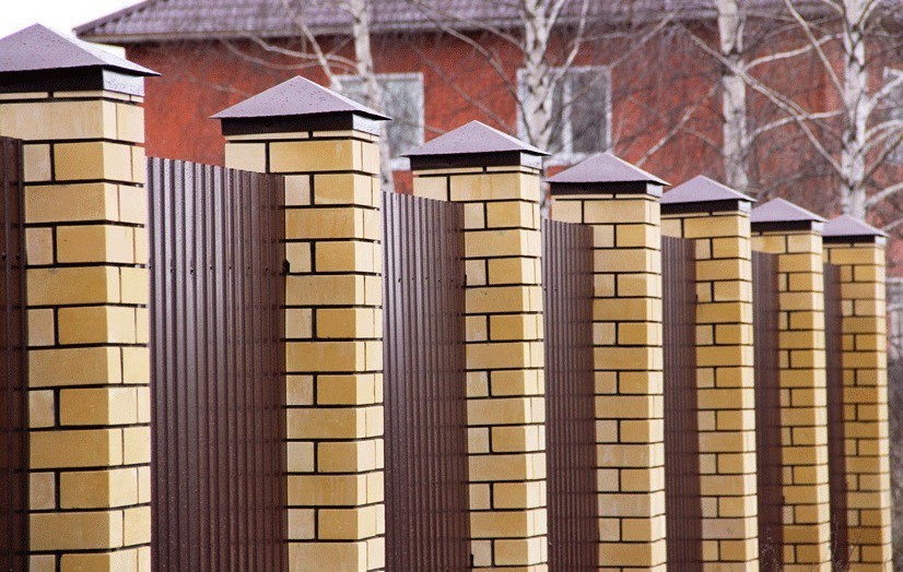 La distance entre les piliers en brique est choisie individuellement en fonction de la structure des sections de clôture.