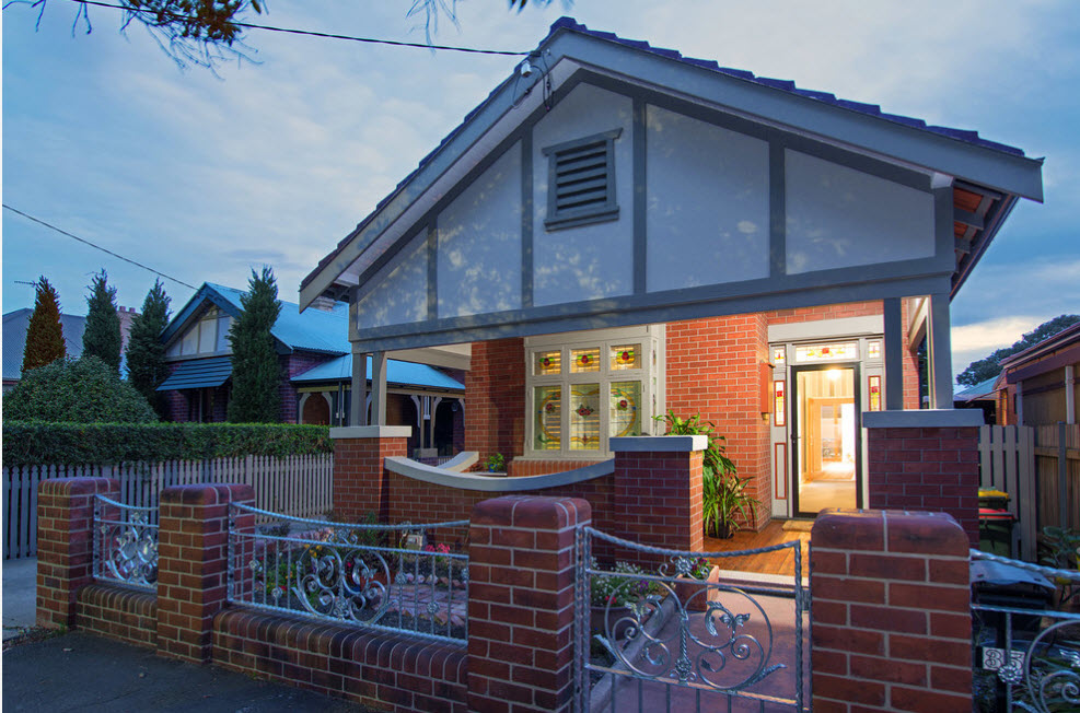 La combinaison de piliers en brique et de profilés en bois n'est pas moins attrayante