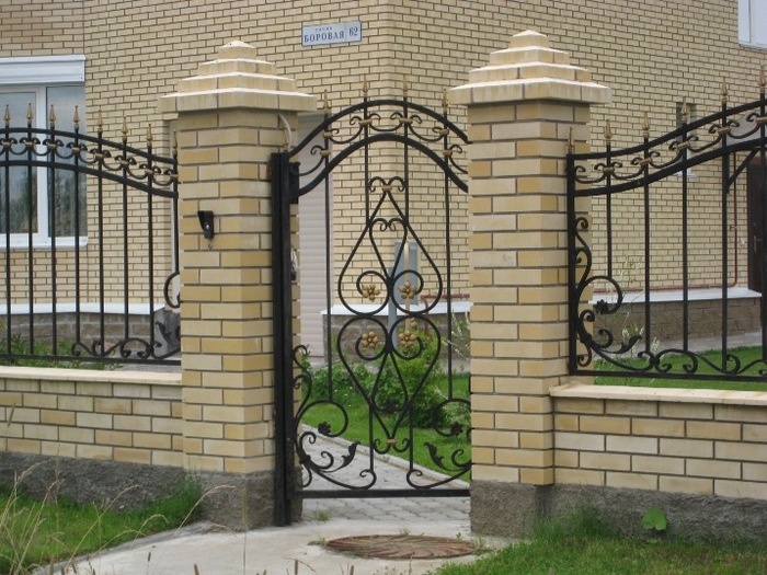De plus, avec des embouts forgés, vous pouvez décorer la partie supérieure des colonnes et autour du périmètre de la clôture - c'est magnifique et peut servir de système de sécurité contre les criminels qui peuvent grimper sur la clôture.