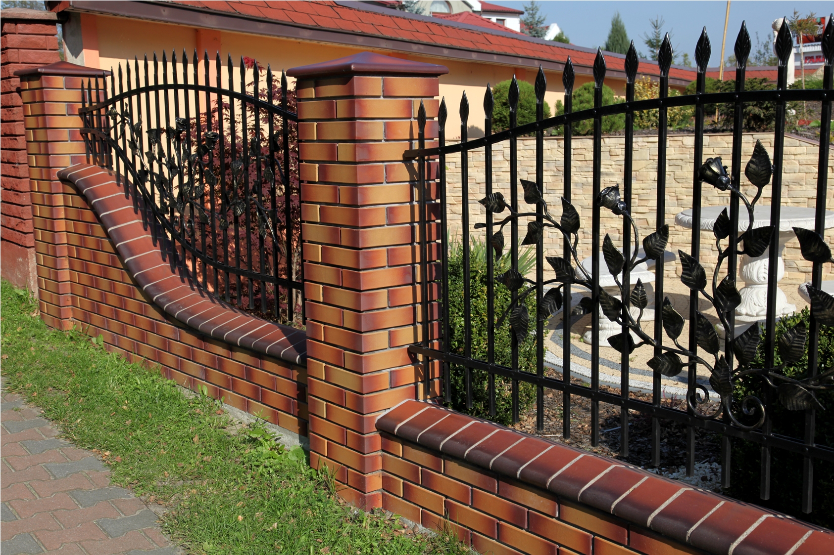 Les clôtures sur les piliers en brique sont solides, durables et semblent solides