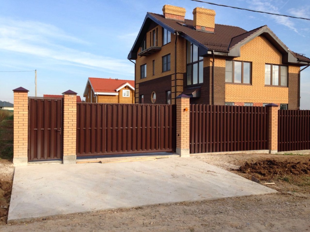 Le moyen le plus populaire est la dernière option, car elle est moins coûteuse en espèces et moins laborieuse. Les portails, les guichets peuvent être directement attachés au tuyau profilé, ce qui réduira la charge sur la maçonnerie.