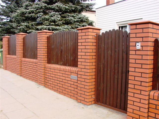Une clôture avec des piliers en brique peut reposer sur une telle base: colonnaire ou ruban.