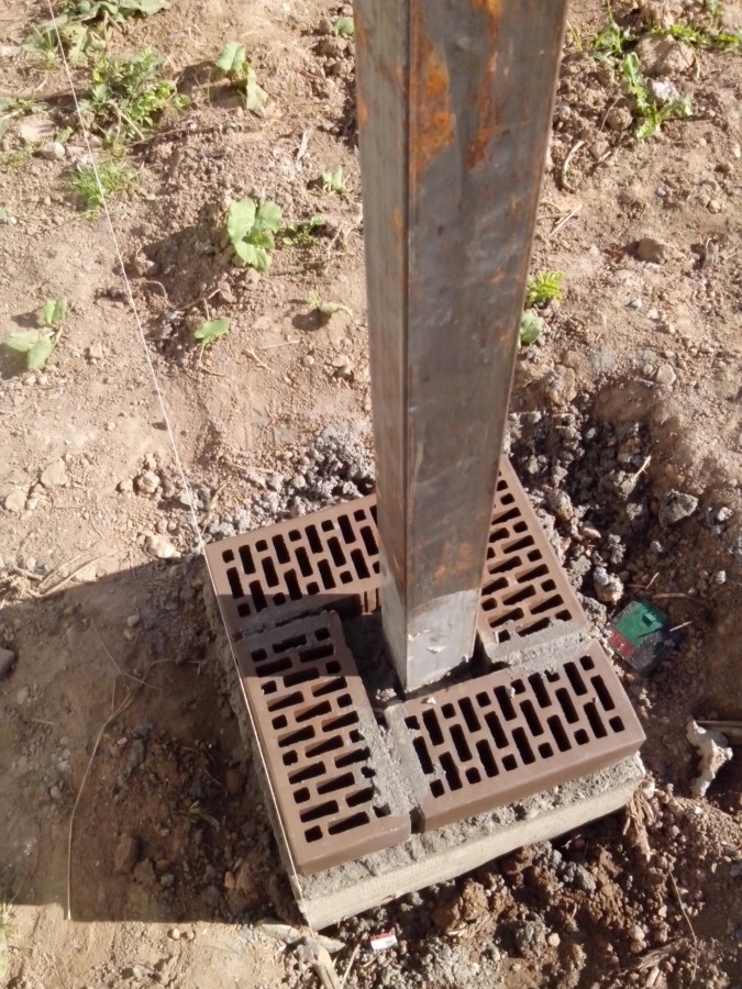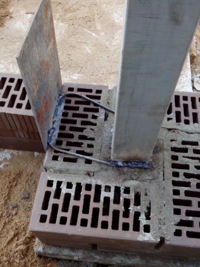 - Montez des tiges de fer à la base des poteaux, qui doivent également être connectés à la fondation.