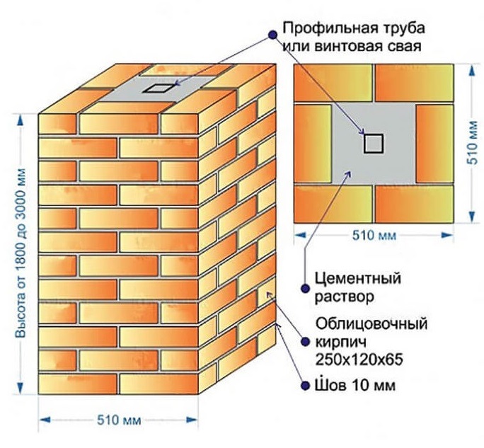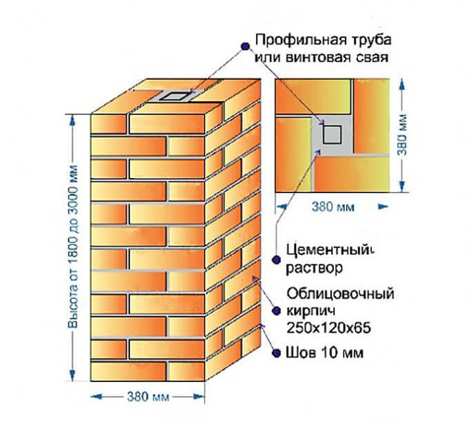 Avant d'acheter une brique, vous devez calculer correctement sa quantité. Cela peut être fait comme suit: divisez la hauteur de la colonne par l'épaisseur de la brique avec la couture.