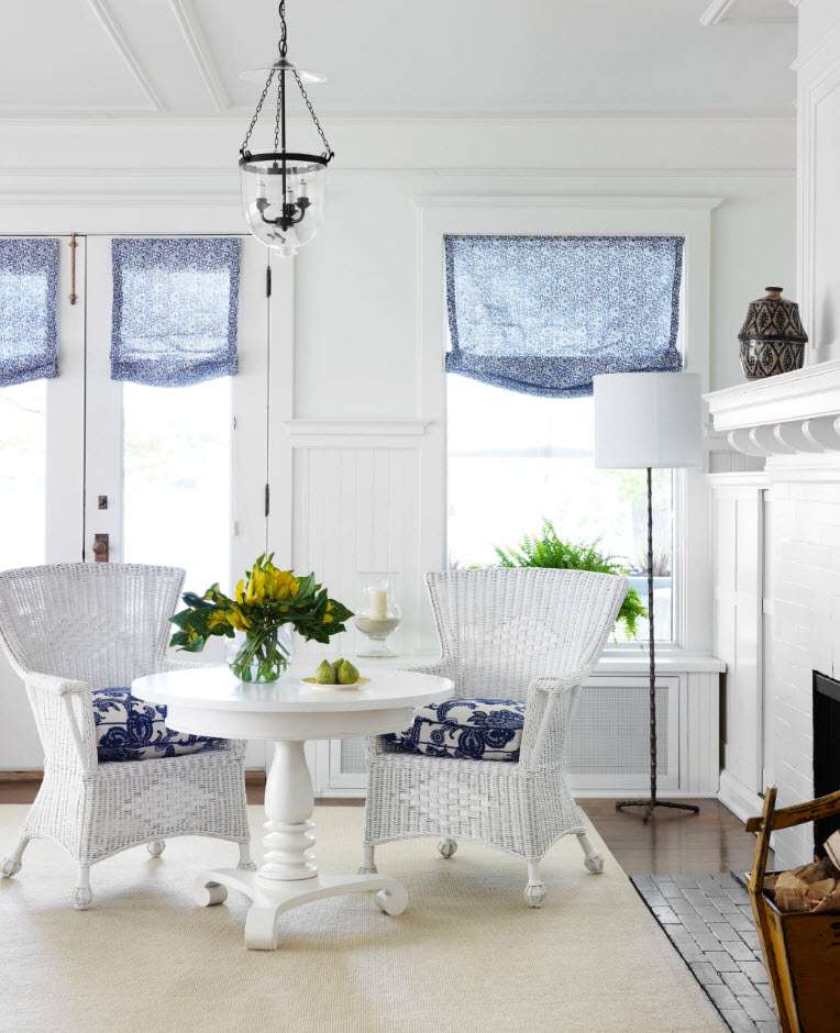Penggunaan tirai roller buluh bersama-sama dengan kanvas lurus klasik menjadi popular.