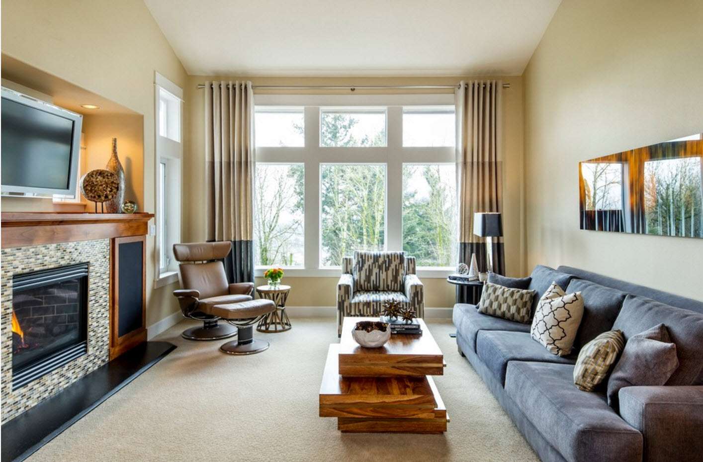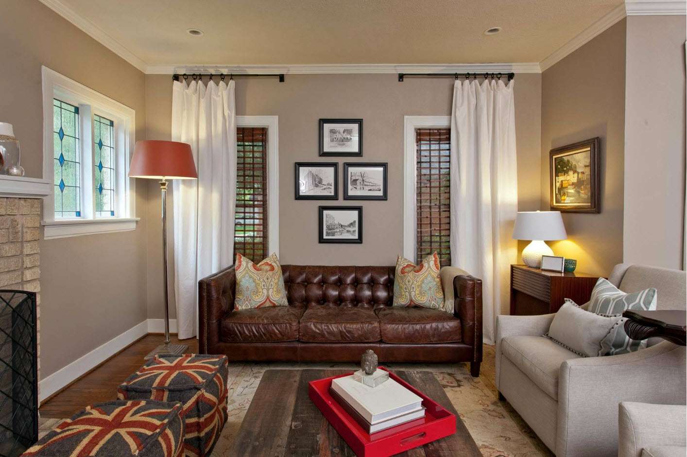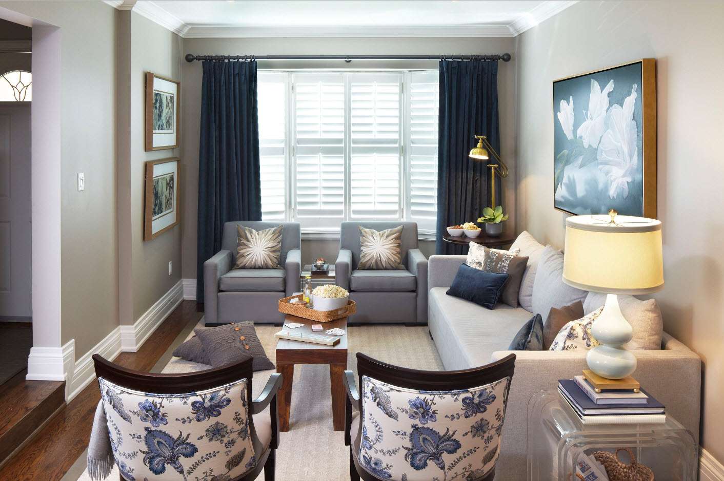 - Jenis dalaman. Ia boleh menjadi sungguh, setiap hari. Ia bergantung kepada fungsi utama ruang tamu. Windows sepadan dengan arah yang dipilih.
