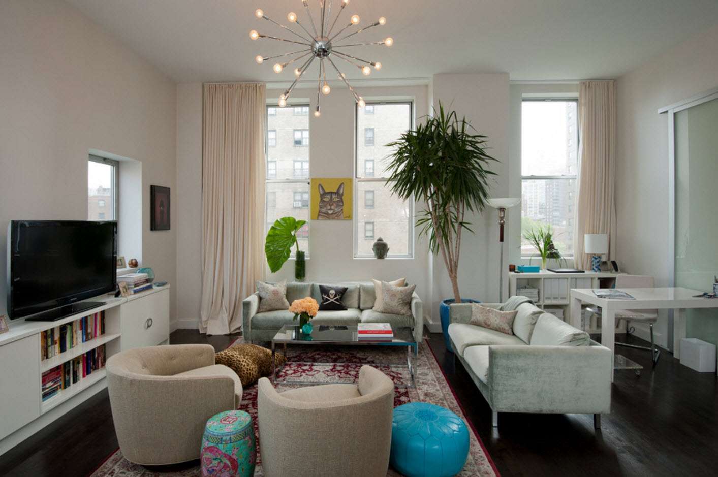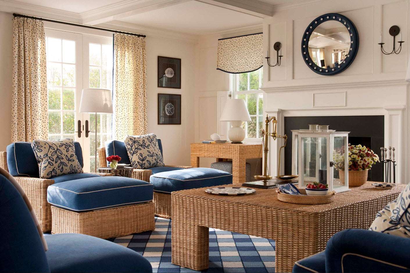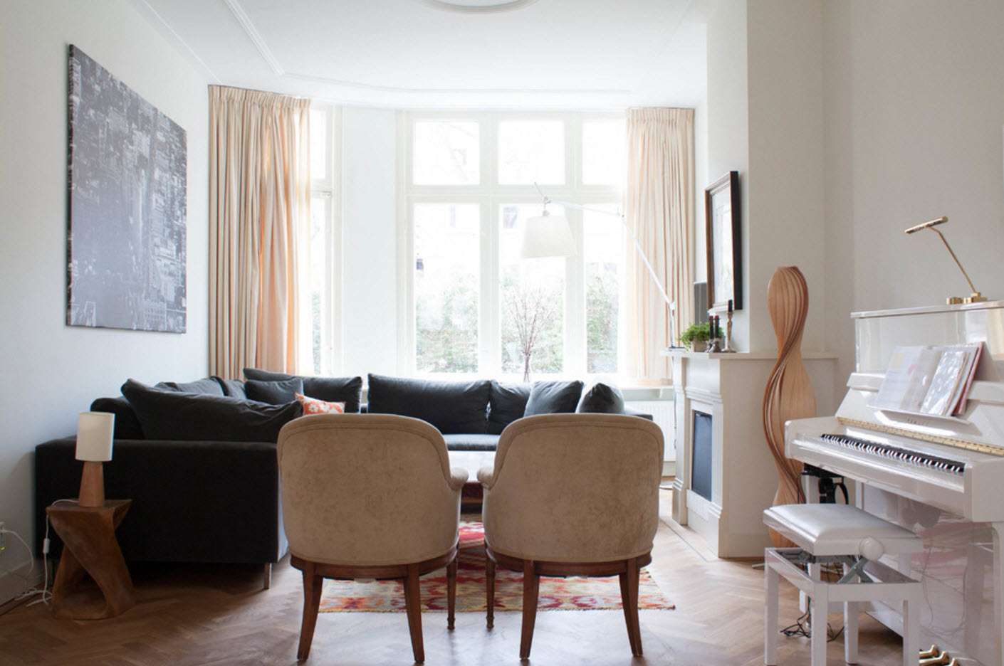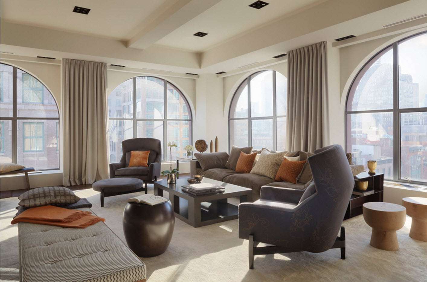 - Jenis dalaman. Ia boleh menjadi sungguh, setiap hari. Ia bergantung kepada fungsi utama ruang tamu. Windows sepadan dengan arah yang dipilih.
