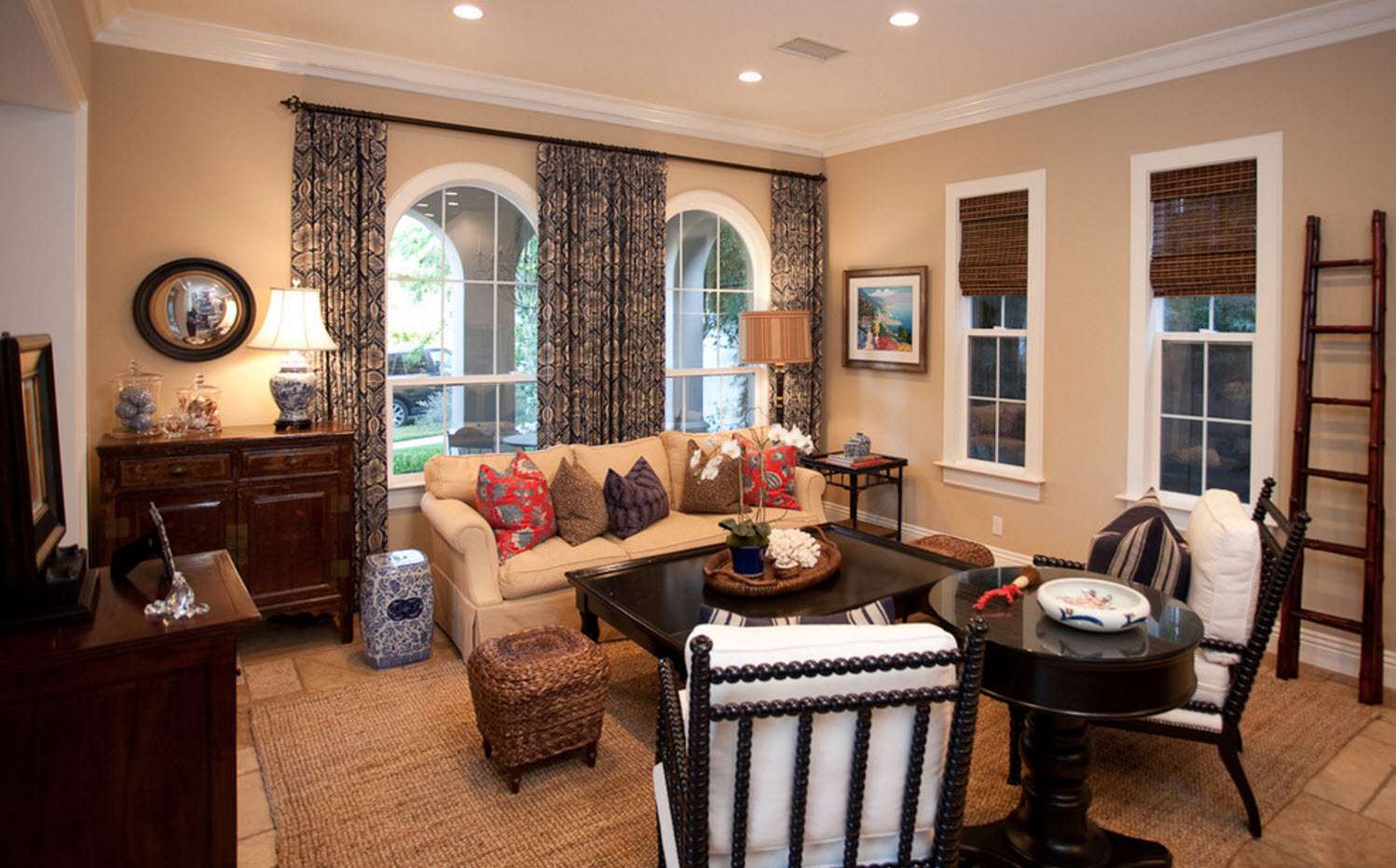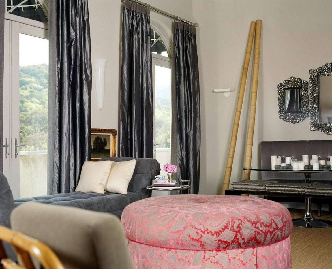 Bagi ramai orang, mereka bentuk ruang tamu menyebabkan banyak masalah. Apa yang perlu dilakukan jika terdapat beberapa tingkap? Bilik-bilik tersebut biasanya dicirikan oleh siling-siling yang tinggi. Tugas utama dekorasi mereka adalah untuk mengurangkan penglihatan secara visual. Langsir klasik boleh dengan mudah mengatasinya. Klasik dalam kes ini akan menjadi penyelesaian terbaik. Ia secara visual mengurangkan bukaan, menekankan reka bentuk mewah ruang tamu. Tetapi sangat penting untuk memilih skema warna yang betul. Warna cahaya tidak akan berfungsi. Mereka sering digunakan untuk pembukaan sederhana dan kecil. Kain berwarna merah, ungu, hijau, emas adalah sempurna. Anda boleh melengkapkan reka bentuk mereka dengan memasukkan cerah.