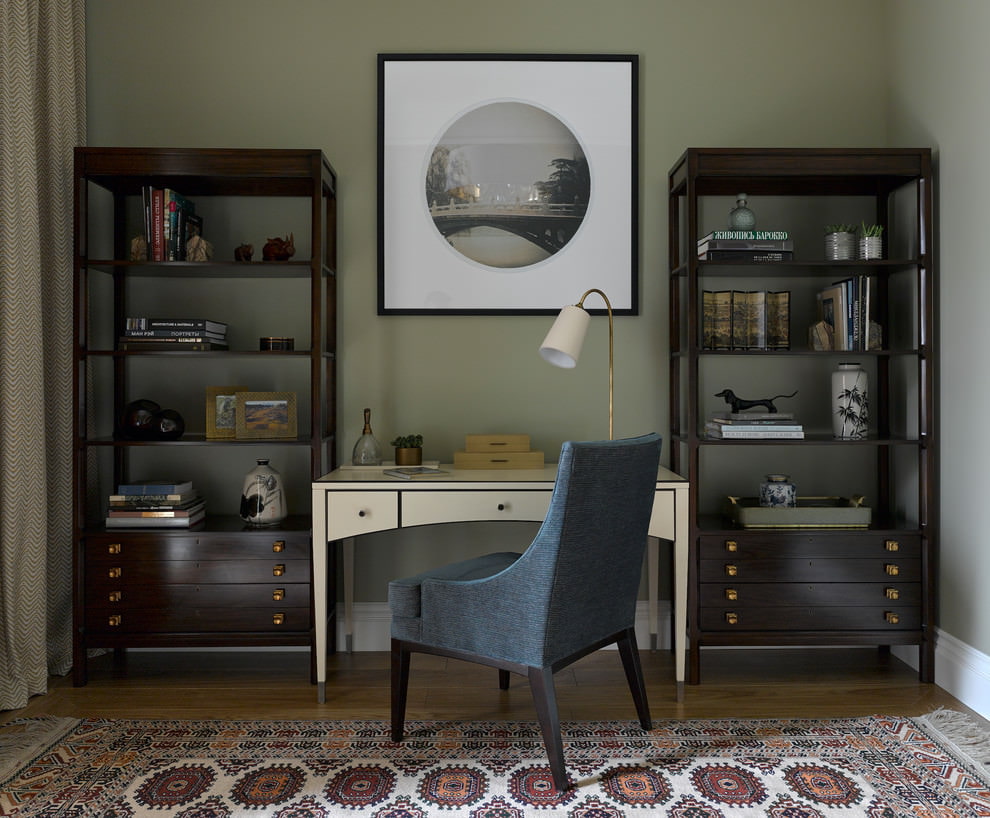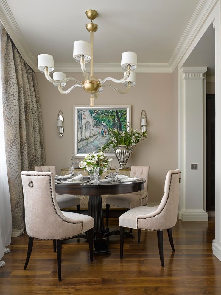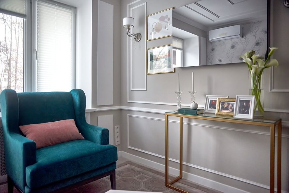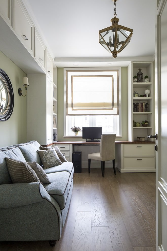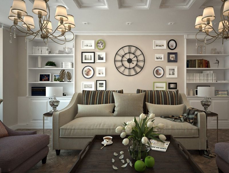 - Perabot diberi keutamaan yang lebih tinggi. Di dalam bilik anda tidak akan menemui satu sofa atau sepasang kerusi berlengan. Ia sentiasa "detasmen perabot" yang terdiri daripada beberapa kerusi, meja, sofa. Dan kehadiran ottomans untuk kaki dan meja kopi adalah wajib, yang menambah keselesaan ke bilik.