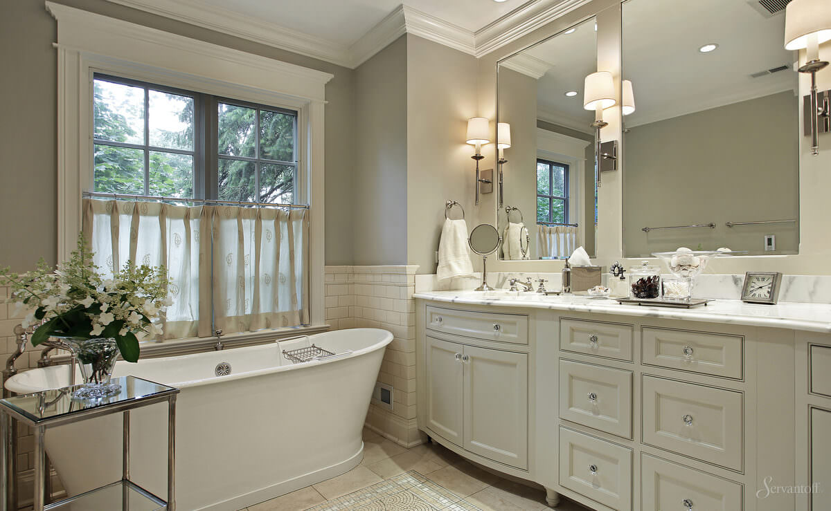 Saiz yang mengagumkan adalah ciri utama tab mandi Amerika.Ia boleh menggabungkan bukan sahaja mandi klasik, tetapi juga mandi dimensi. Penekanan berasingan diletakkan pada pemandangan. Walaupun di dalam bilik itu, lukisan dengan tema yang relevan boleh didapati, warna untuk pencahayaan dan juga vas dengan bunga.
