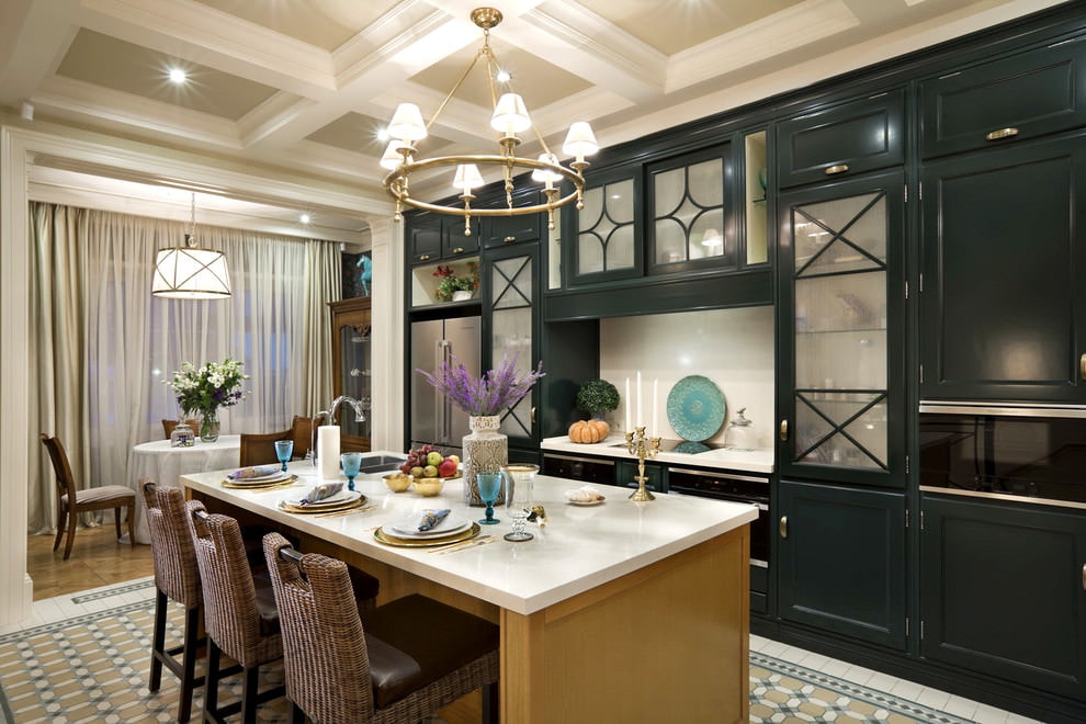Pulau dapur secara aktif digunakan, yang melaksanakan beberapa fungsi sekaligus.