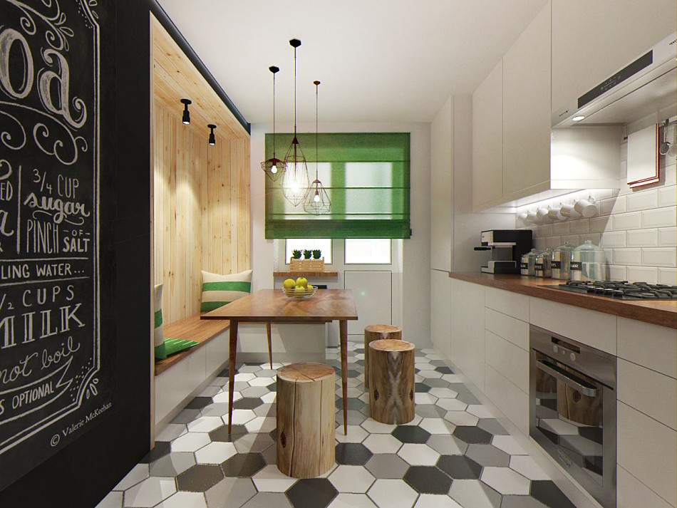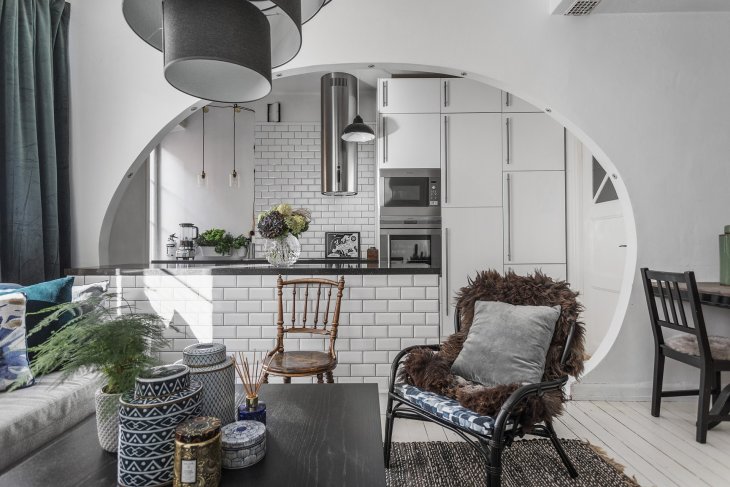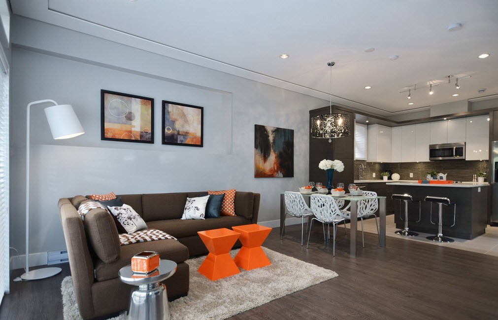 Gabungan dapur dengan ruang tamu membuka kemungkinan untuk reka bentuk luar biasa