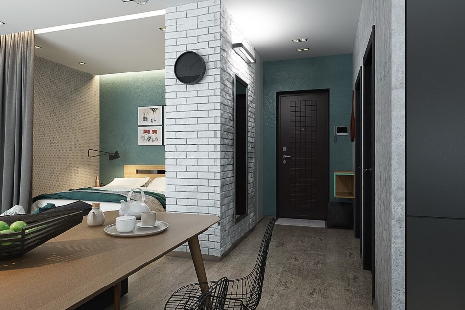 Apabila sebuah apartmen sepatutnya menampung tiga hingga lima orang, masuk akal untuk membahagikan biliknya dengan partisi, perabot, supaya setiap penyewa mempunyai zon kecil yang tersendiri. Masalah tempat tidur mudah diselesaikan oleh katil dua tingkat.