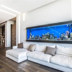 Foto idea-idea menarik untuk akuarium untuk ruang tamu di dinding antara bilik-bilik