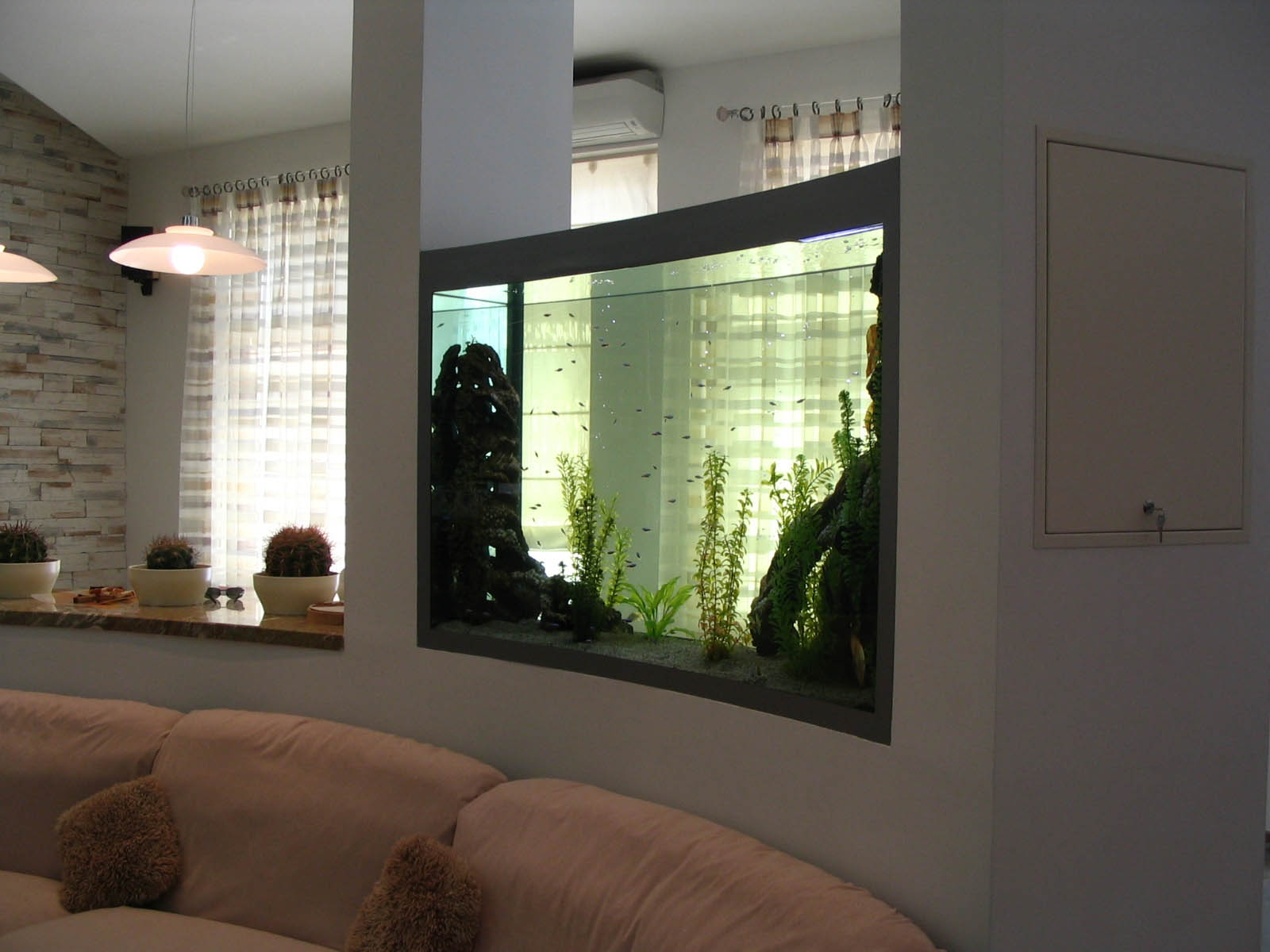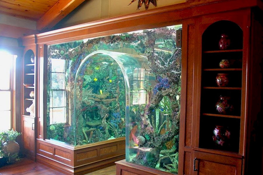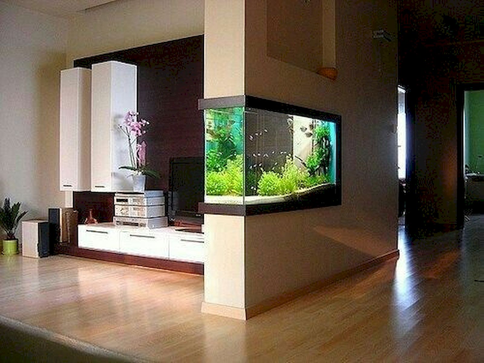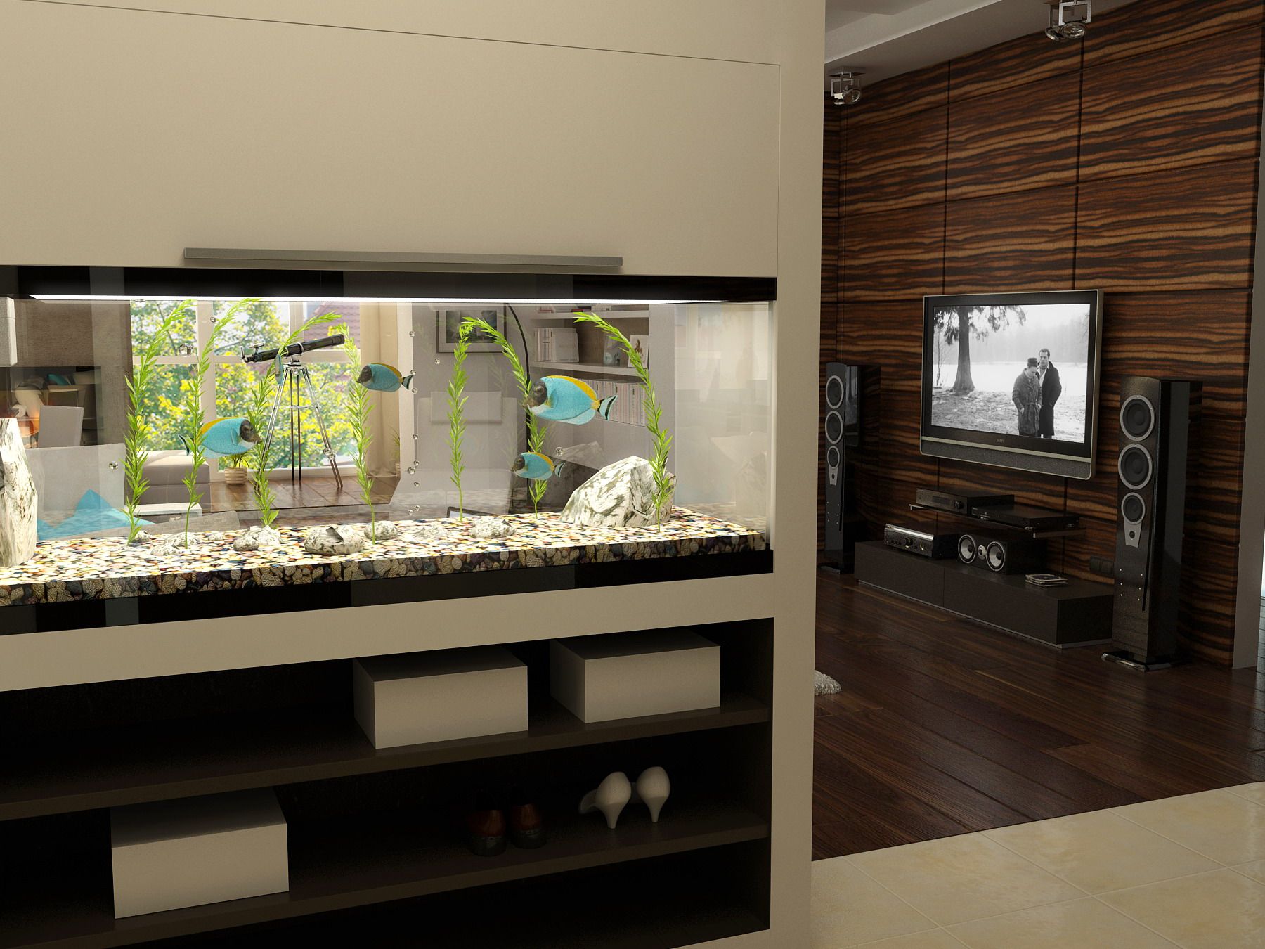 Pemisahan hiasan dengan akuarium boleh terletak di mana-mana sahaja di dalam rumah atau apartmen