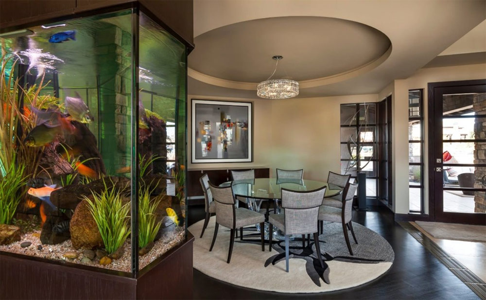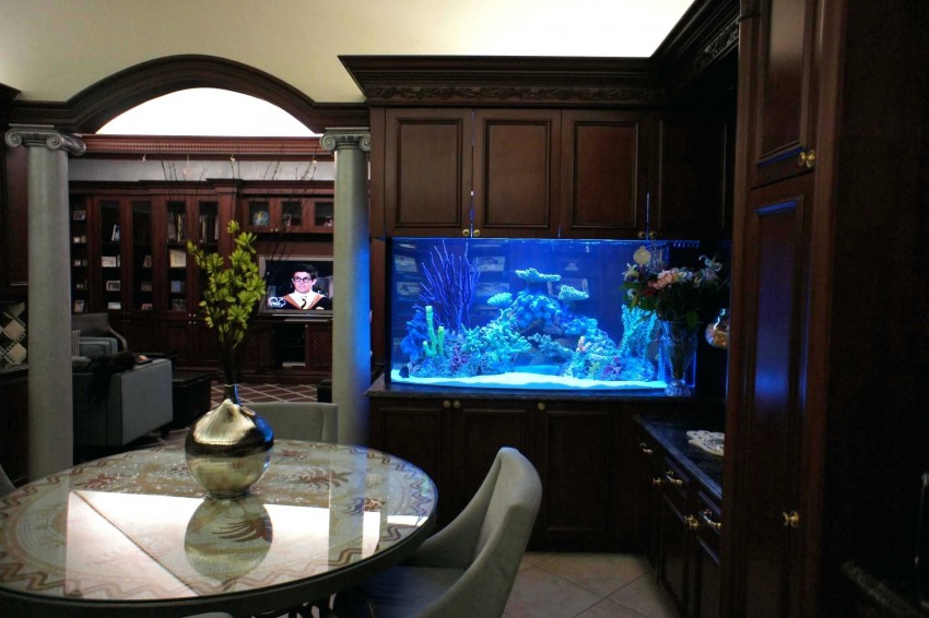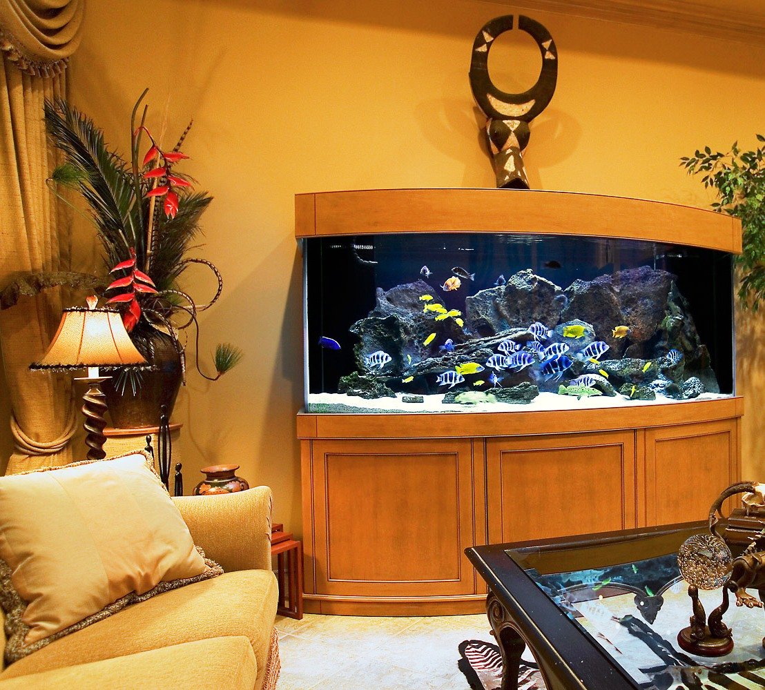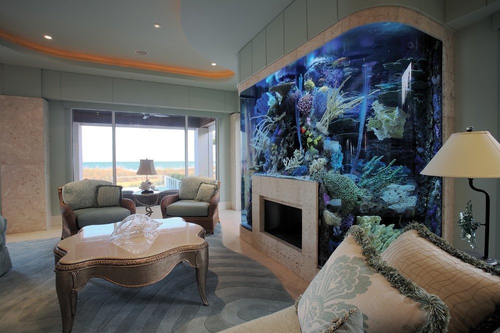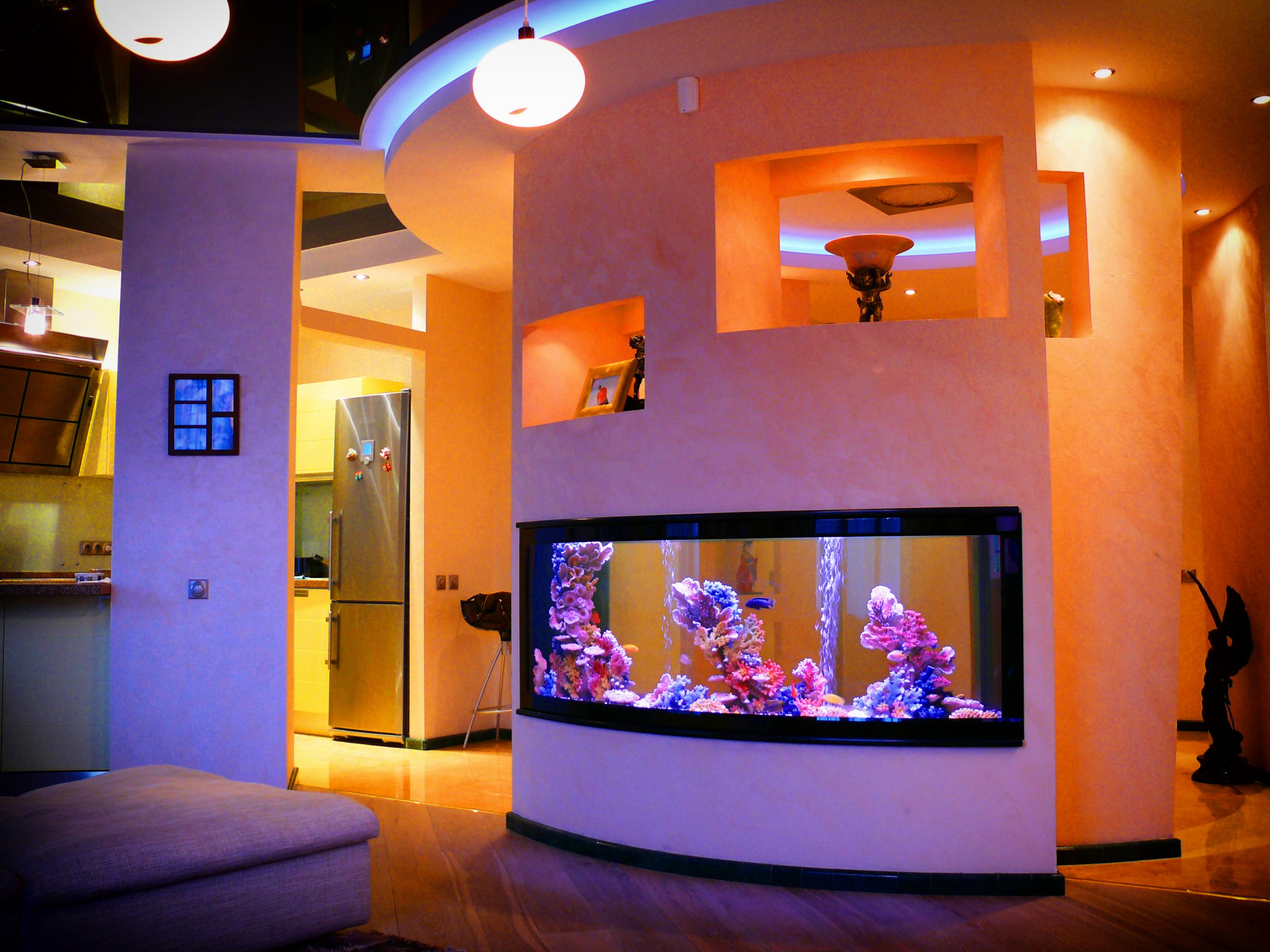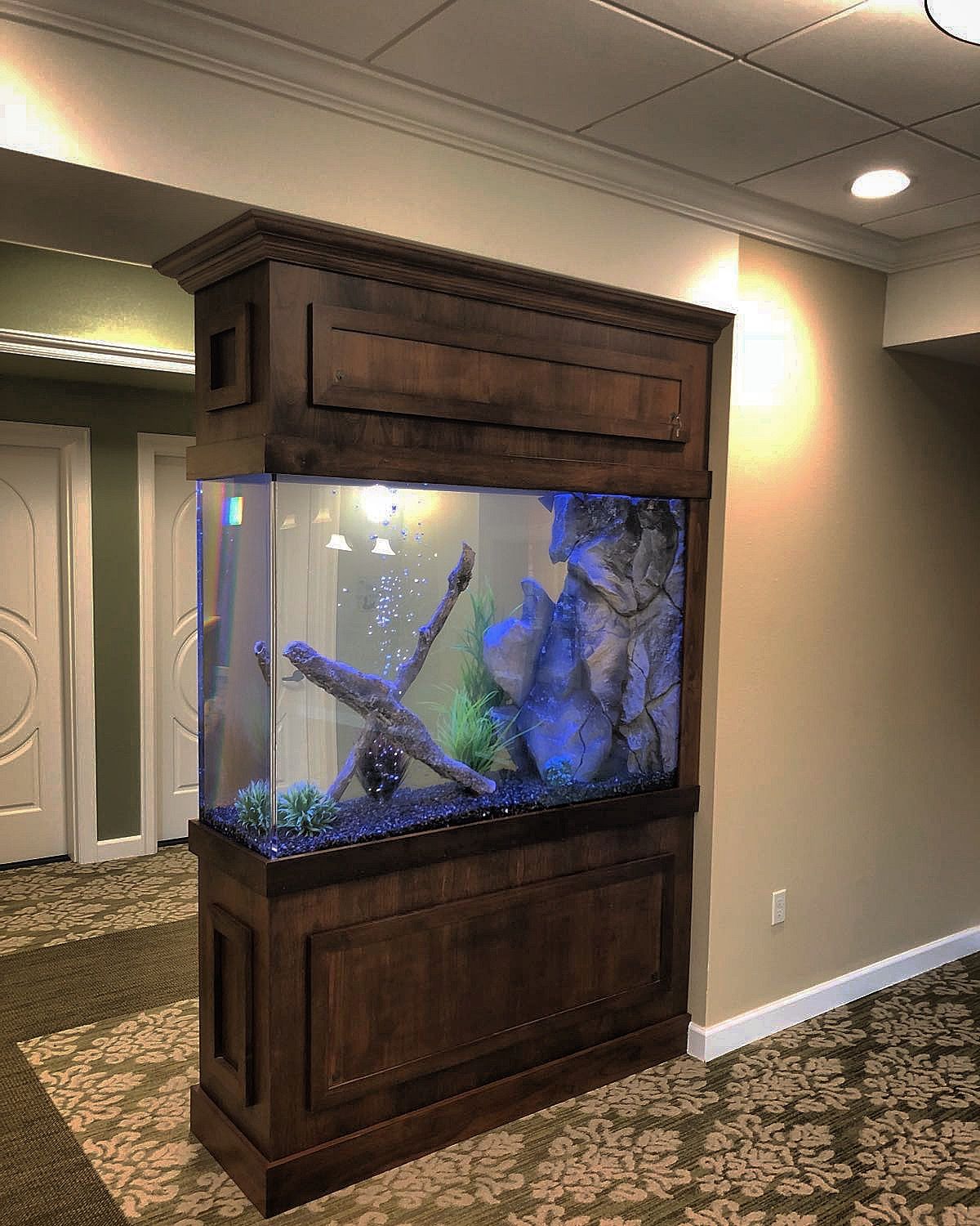 Pemisahan hiasan dengan akuarium boleh terletak di mana-mana sahaja di dalam rumah atau apartmen