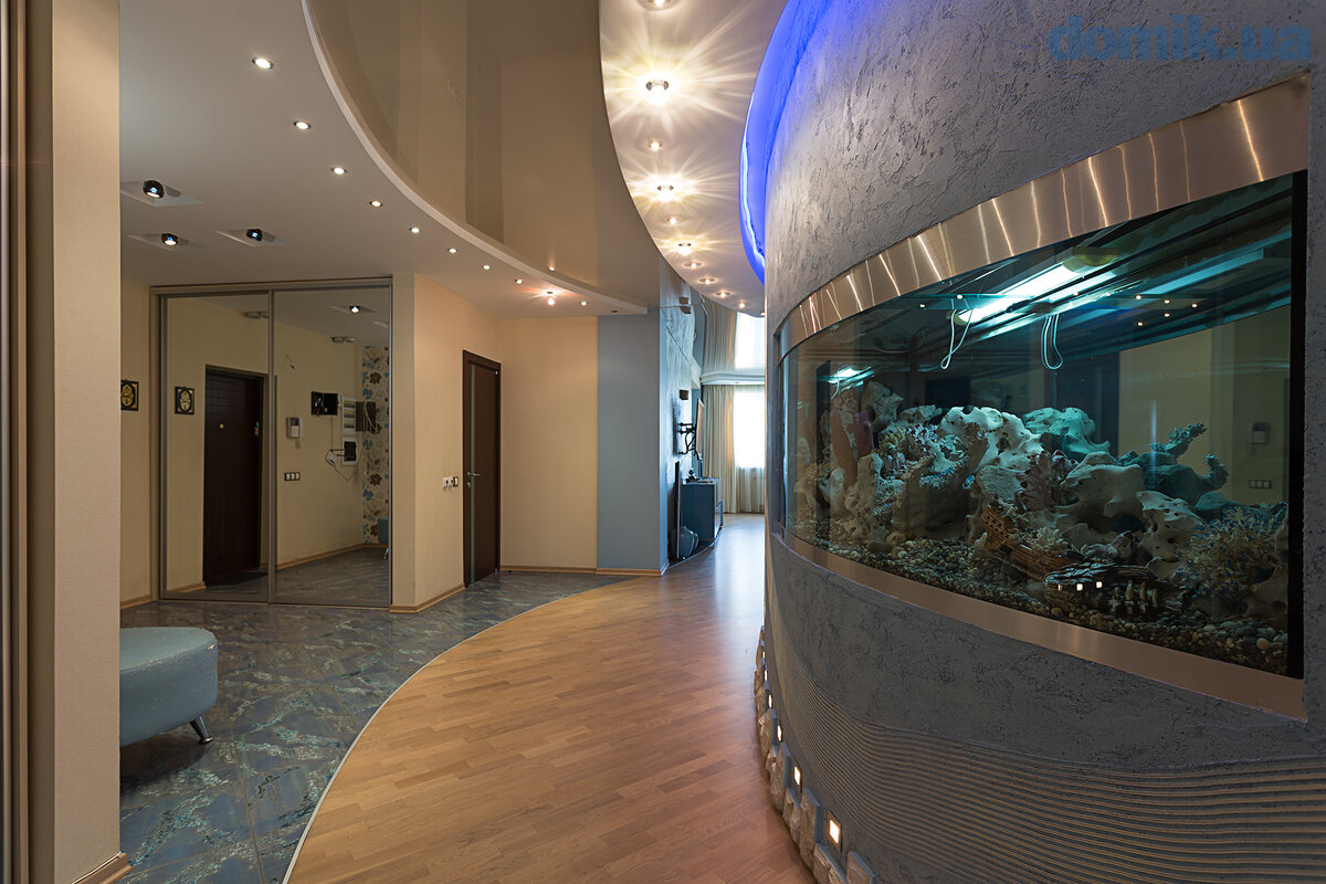 Dan jika anda memasang akuarium di dinding di antara bilik-bilik, maka ini masih akan menjadi keputusan reka bentuk asal yang sangat baik di rumah anda, yang akan menjadi tumpuan dan objek kekaguman pada setiap penerimaan tetamu.