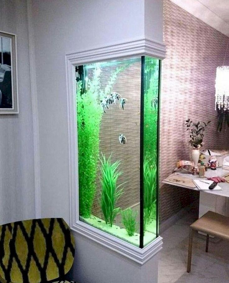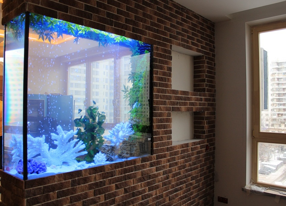 Pilihan untuk akuarium di dinding antara bilik di pedalaman bilik