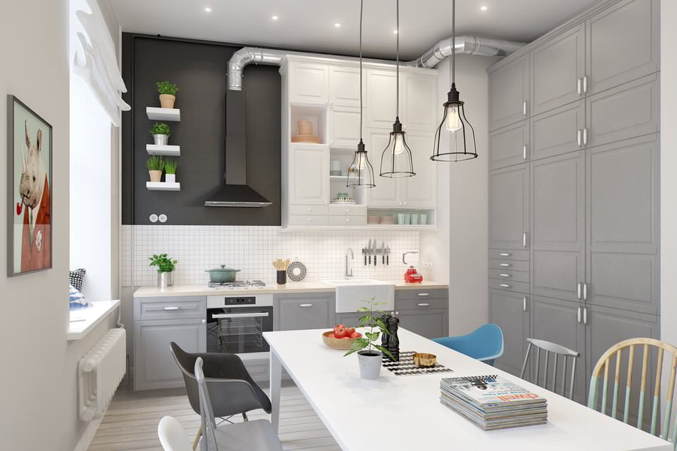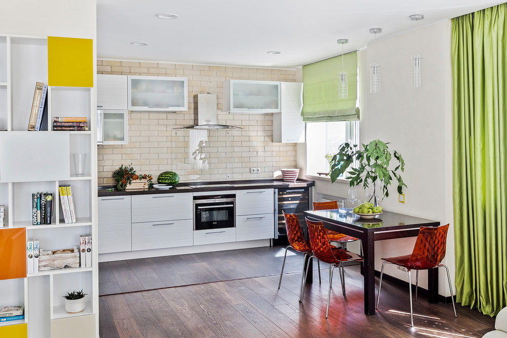 Di ruang tamu dapur yang luas, banyak idea kreatif dan dekoratif dapat direalisasikan.