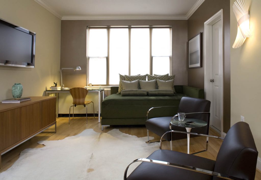 - Contoh-contoh sofa dan katil dalam reka bentuk dan dalaman apartmen studio