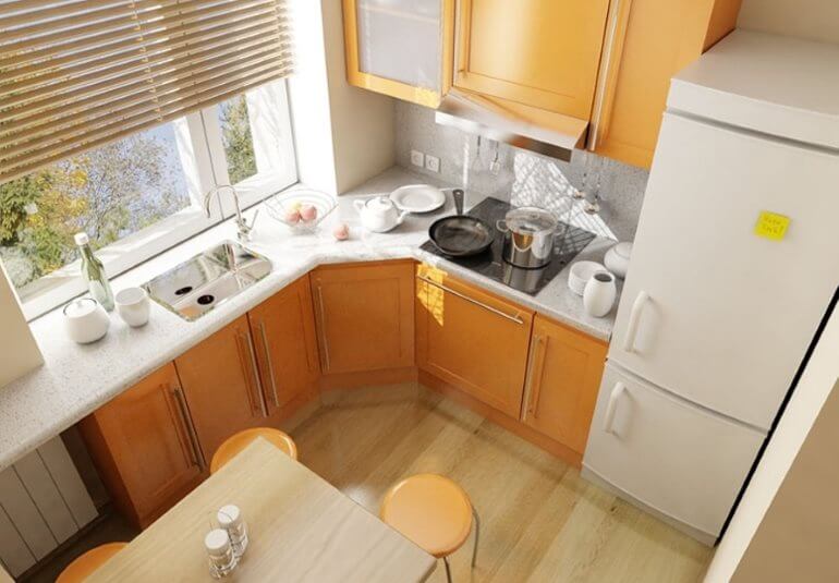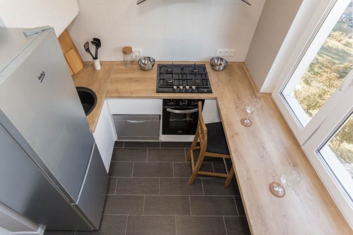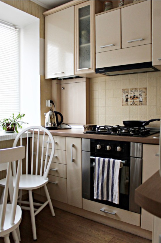 Di dapur kecil, permukaan mana-mana tidak boleh berdiri terbiar, walaupun jendela harus dimuatkan