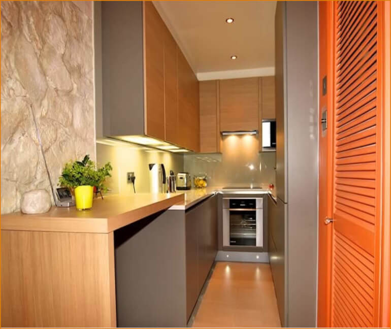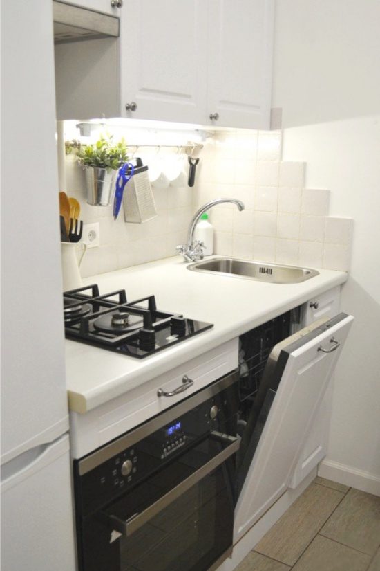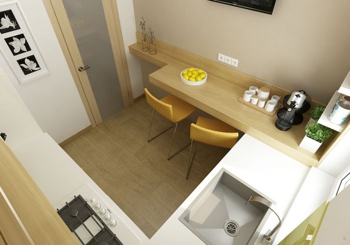 Reka bentuk dapur kecil adalah berdasarkan pengembangan ruang visual