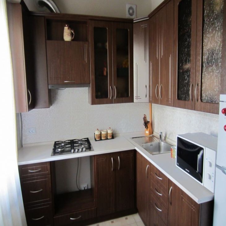 Untuk peralatan rumah tangga tidak mengambil terlalu banyak ruang, lebih baik untuk membinanya menjadi perabot. Untuk melakukan ini, ada kes-kes khas dipasang di dapur 2 meter dengan 2 meter, termasuk.