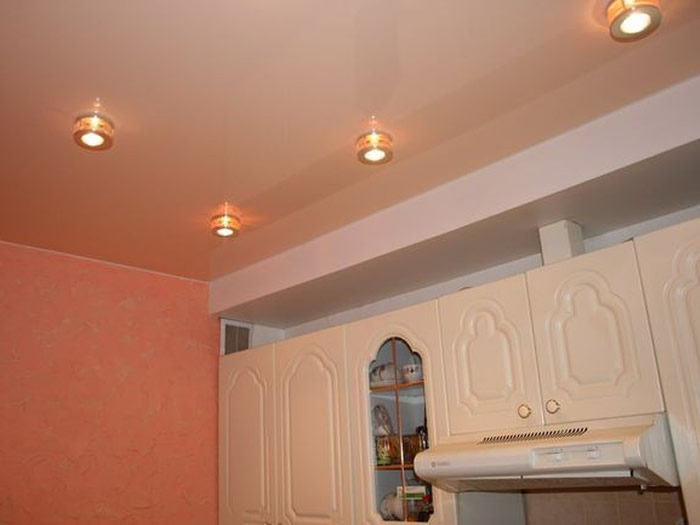 Permukaan berkilat siling akan menjadikan ruang dapur lebih cerah