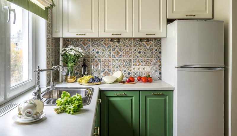 Pilihan gaya untuk dapur 2x2 meter dengan peti sejuk