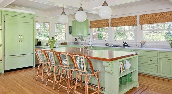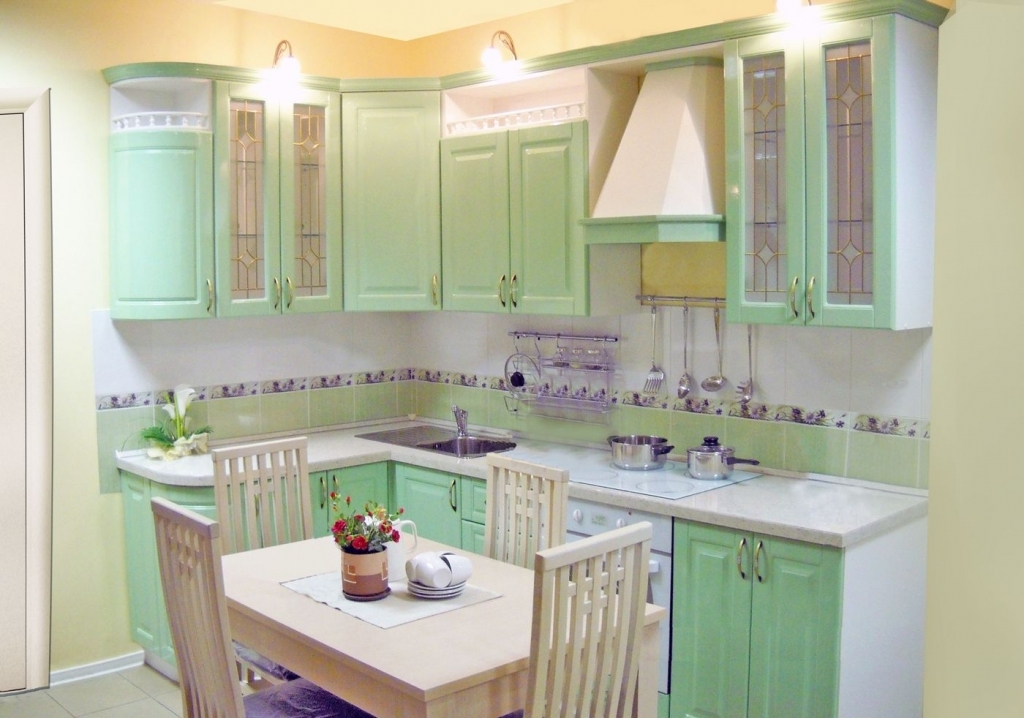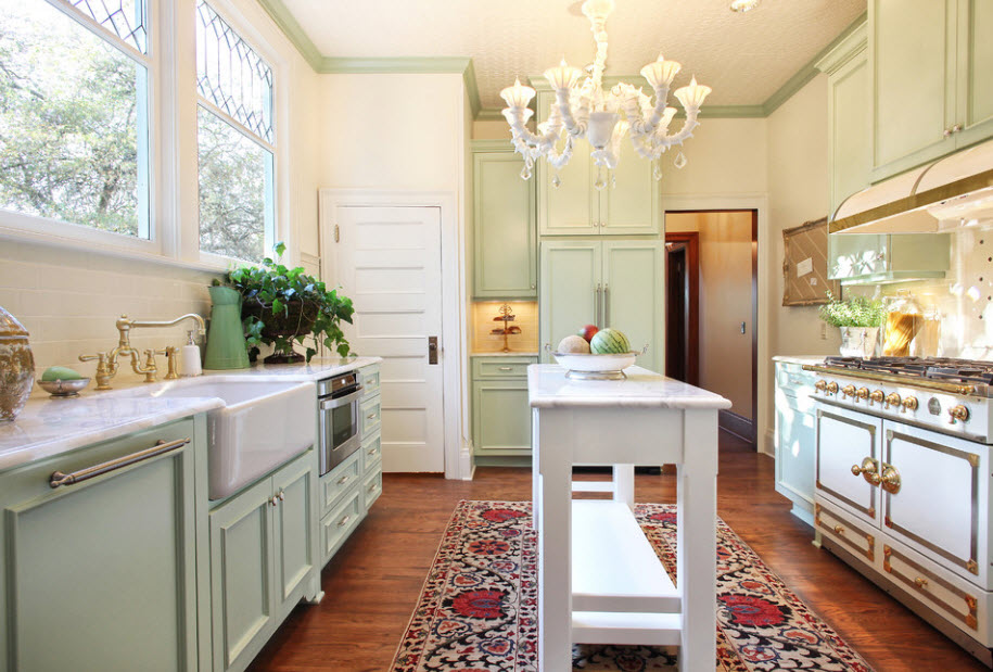 Mari lihat contoh dapur warna pudina, gambar dalaman yang akan anda lihat di bawah.
