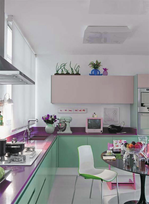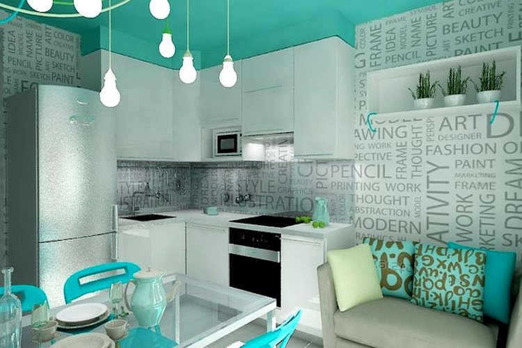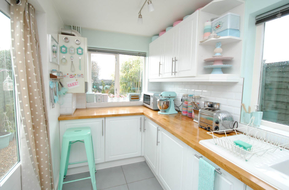 - Oleh kerana kehadiran beberapa jenis warna, dapur warna pudina memperoleh pilihan reka bentuk unik yang dari masa ke masa tidak mengganggu mata.