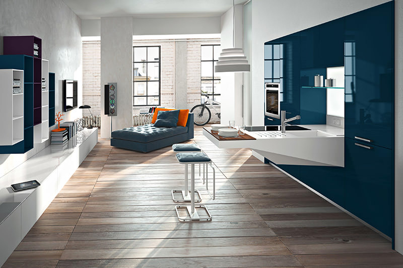 Kawasan dapur padat digabungkan dengan ruang tamu