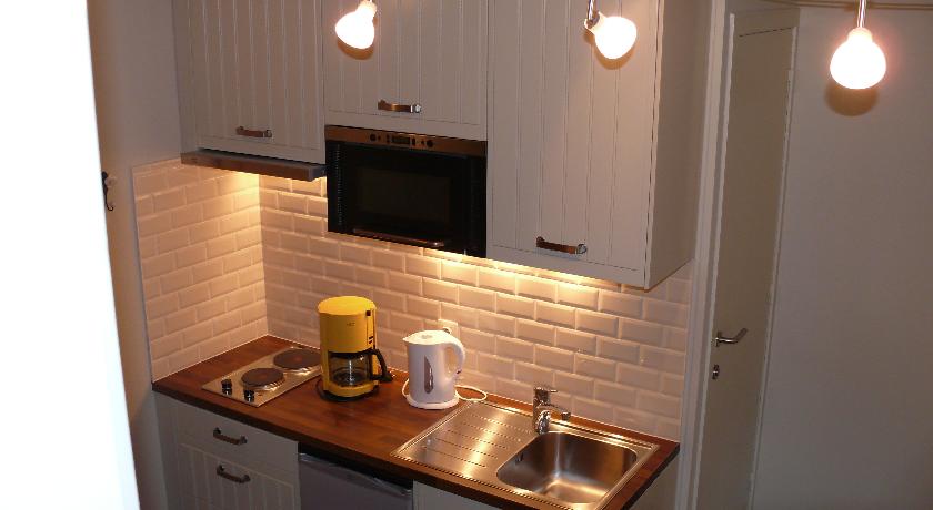 Dapur kecil di ruang masuk sebuah apartmen kecil