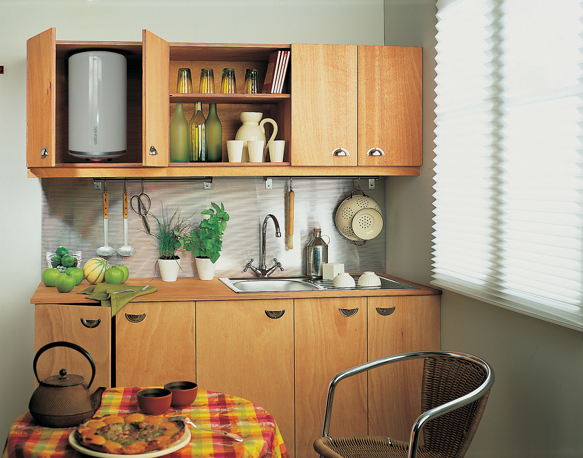 Untuk menjimatkan ruang, anda boleh memberi pilihan kepada peralatan dapur bersaiz kecil: