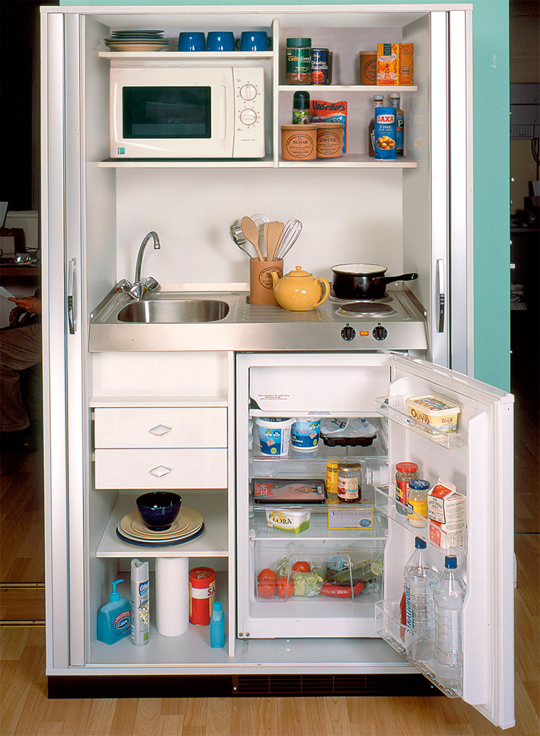 Dapur dapur pejabat adalah modul padat yang merangkumi semua yang anda perlukan untuk memasak