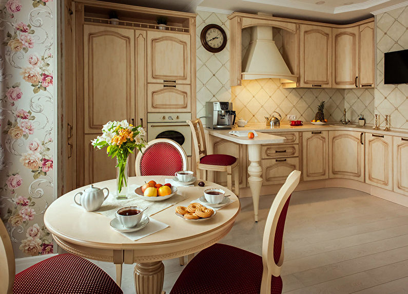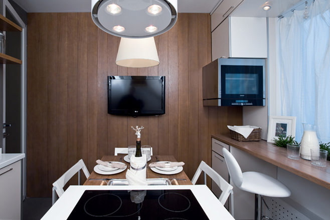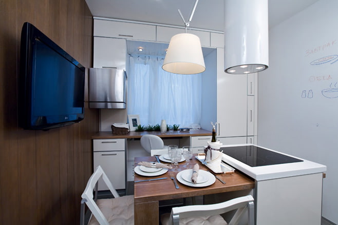 Untuk dapur kecil, lebih baik memilih jadual bulat atau bujur, yang membolehkan anda selesa menampung lebih ramai orang