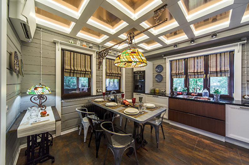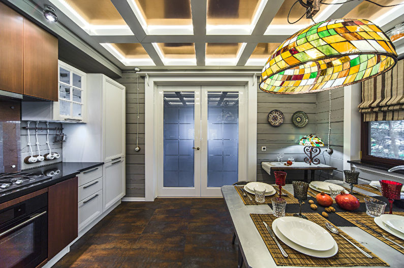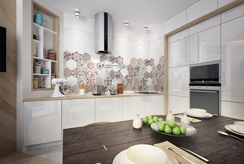 Skema warna dapur dalaman juga sepenuhnya di dalam kawalan anda, tetapi ingat bahawa anda akan makan di dalam bilik ini, dan warnanya harus memainkan selera makan. Ia tidak perlu untuk memasang dinding mural dengan makanan, tetapi pastel dan warna cahaya akan berguna. Pilihannya tidak mudah. Untuk menjadikannya betul, anda harus memilih kesan pedalaman, kerana ia mempengaruhi suasana semasa makan dan membuat anda ingin makan.