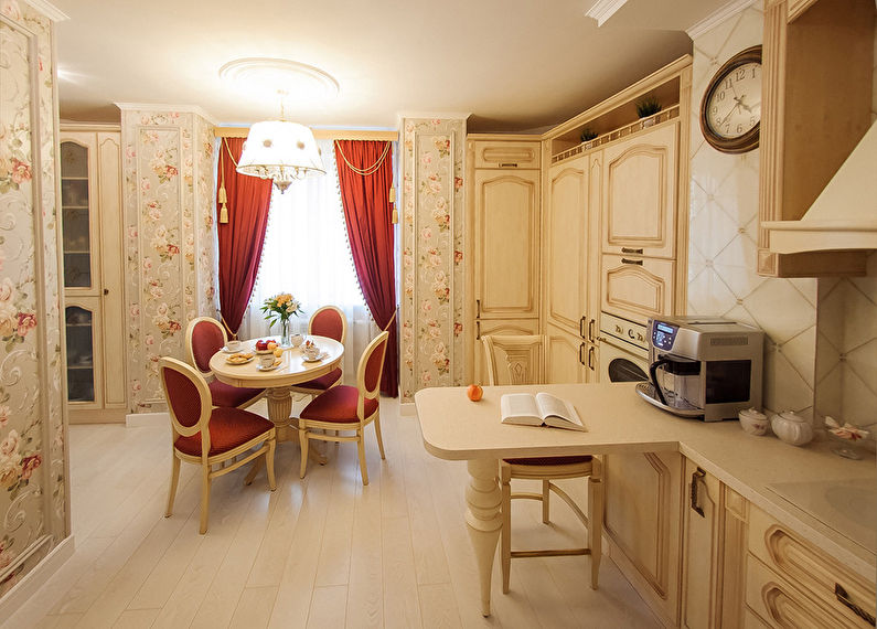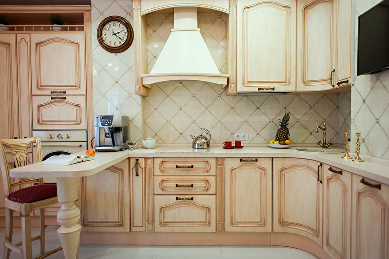 Lebih mudah untuk mencari reka bentuk reka bentuk siap untuk dapur masa depan di tapak seni bina atau pembinaan. Ia akan mempunyai nilainya. Terdapat pilihan klasik untuk reka bentuk siap yang termasuk set standard perabot dapur. Interiornya biasanya praktikal, tanpa unsur-unsur yang luar biasa, selesa, tidak mengandungi warna-warna cerah atau kelabu. Terdapat banyak projek siap sedia di Internet, di pelbagai tapak pembinaan, dan lain-lain. Walau bagaimanapun, memilih mana-mana pedalaman, anda mesti mengingat ukuran anda. Di laman web anda, anda boleh memesan projek reka bentuk dengan menghantar kepada arkitek data pengukuran bilik dan keinginan. Walau bagaimanapun, kerja seorang tuan boleh mahal. Alat dengar atau dapur klasik boleh didapati di kedai perabot dalam talian. Bahagian dalaman seperti ini difikirkan dengan baik, selesa dan kelihatan bergaya, tetapi, disebabkan oleh ciri-ciri premis anda, mereka boleh hancur.