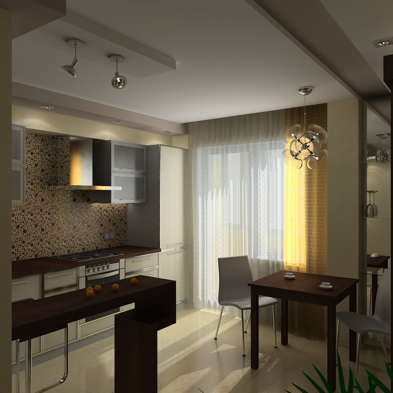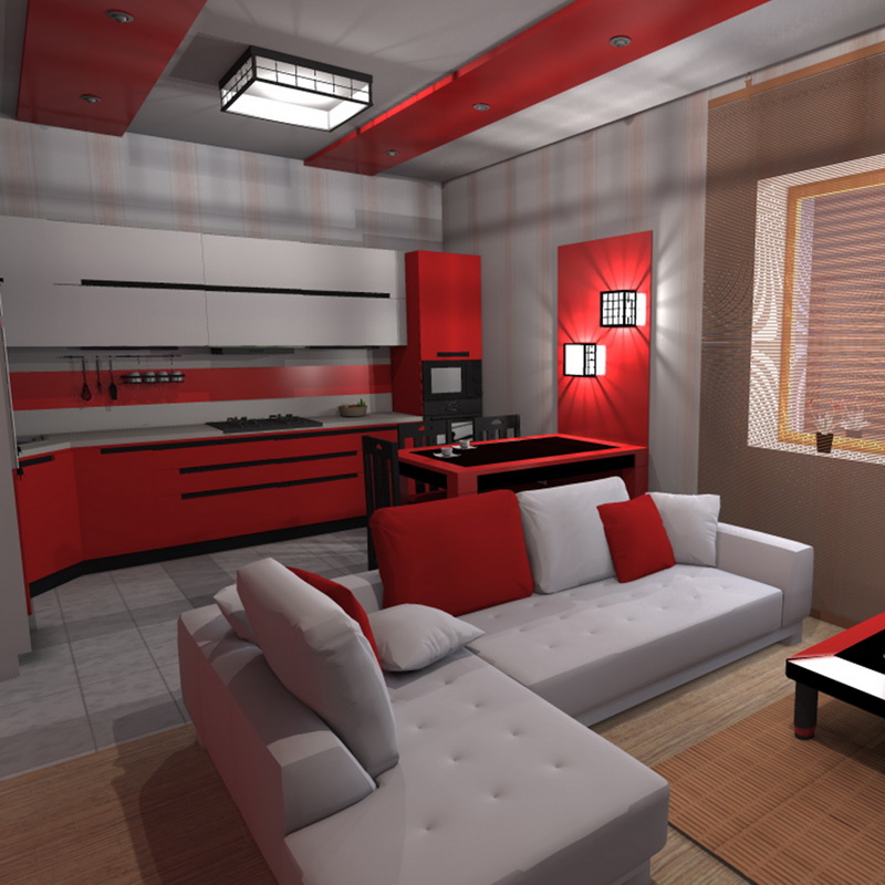 Walaupun dengan kemungkinan terdekat penggabungan dapur dan ruang tamu, seseorang tidak sepatutnya lupa bahawa ini adalah dua bahagian yang tidak sepadan dengan apartmen atau rumah.