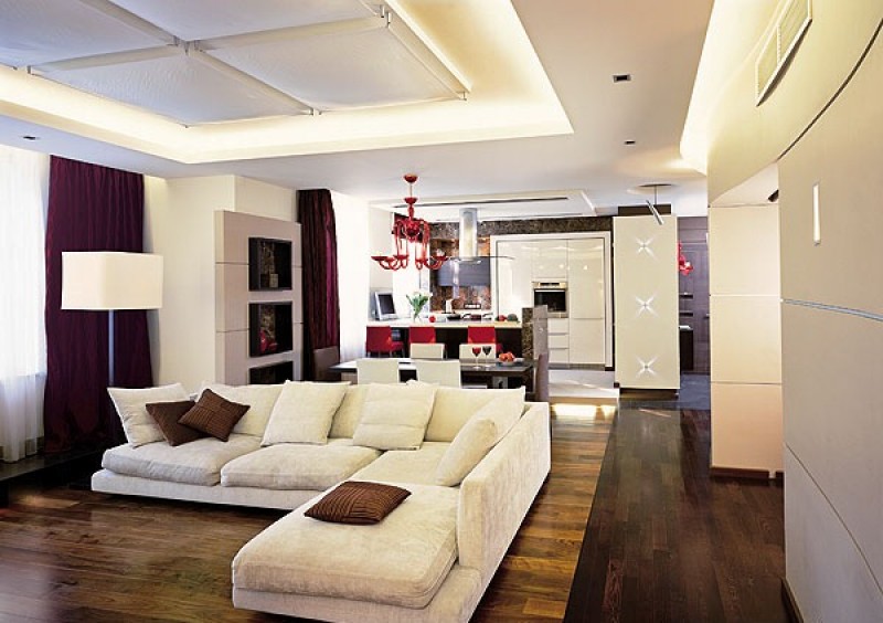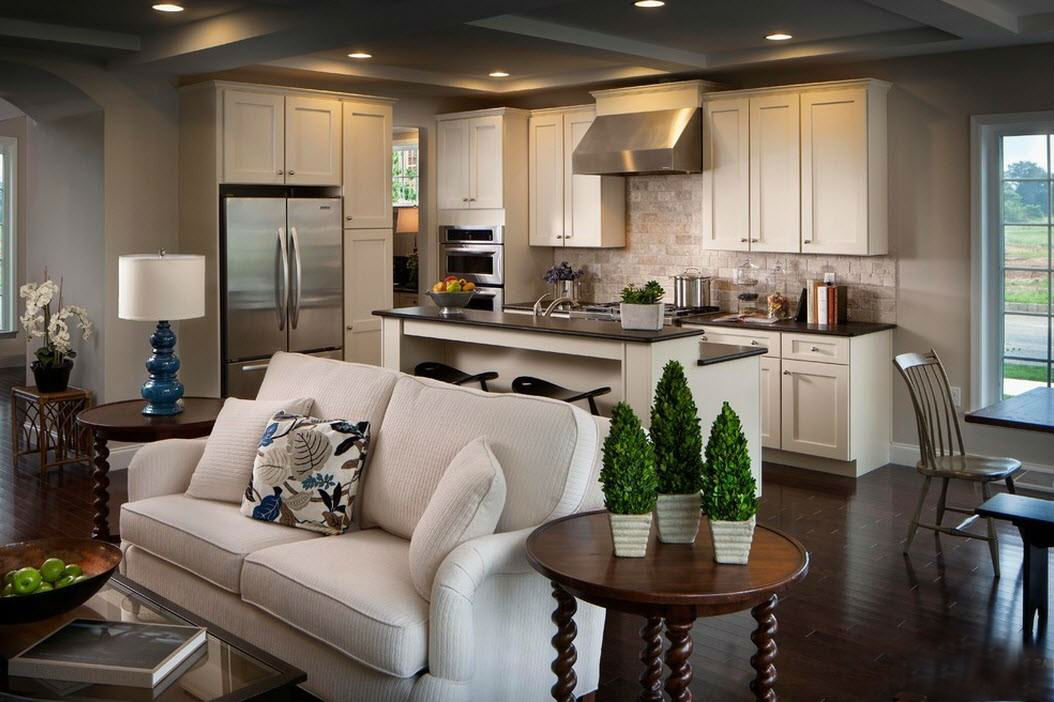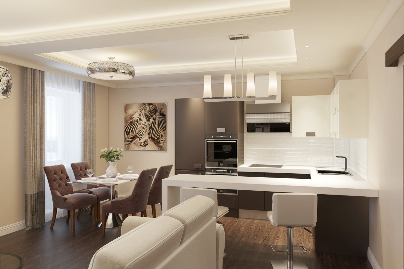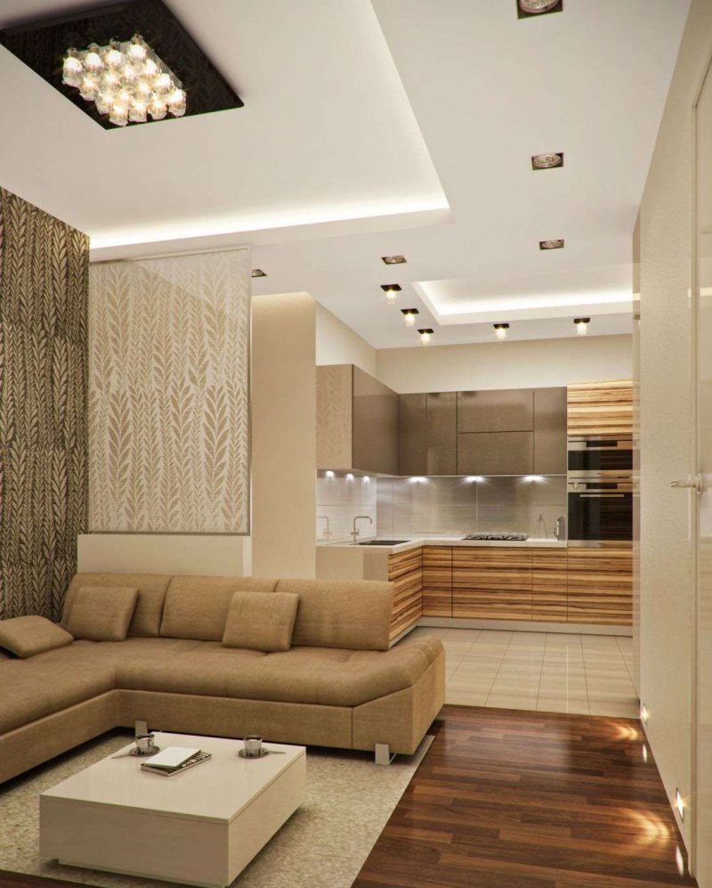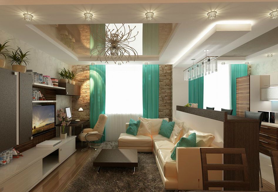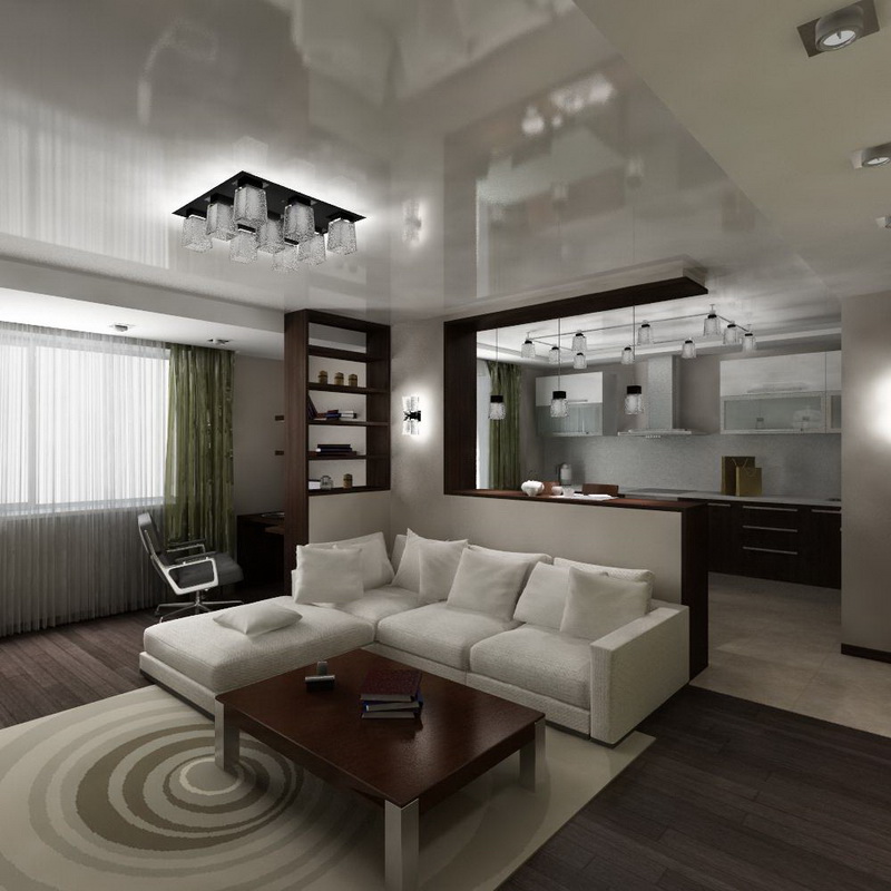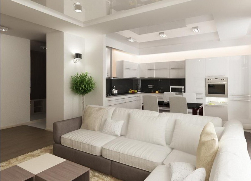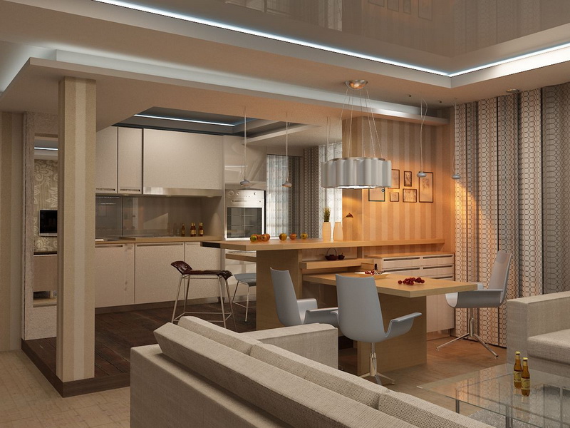 Dapur dan ruang tamu dalam satu bilik moden, selesa dan bergaya. Sekiranya pelan apartmen atau rumah tidak pada awalnya memberi ini, anda boleh cuba menyelesaikan masalah ini dengan memasang semula. Peralatan moden, teknologi dan bahan memberi peluang untuk menukar pedalaman di rumah mengikut keperluan dan keutamaan anda. Pemilik pelan Khrushchev yang lapuk dan tidak selesa mempunyai peluang untuk mewujudkan ruang moden, ergonomik.