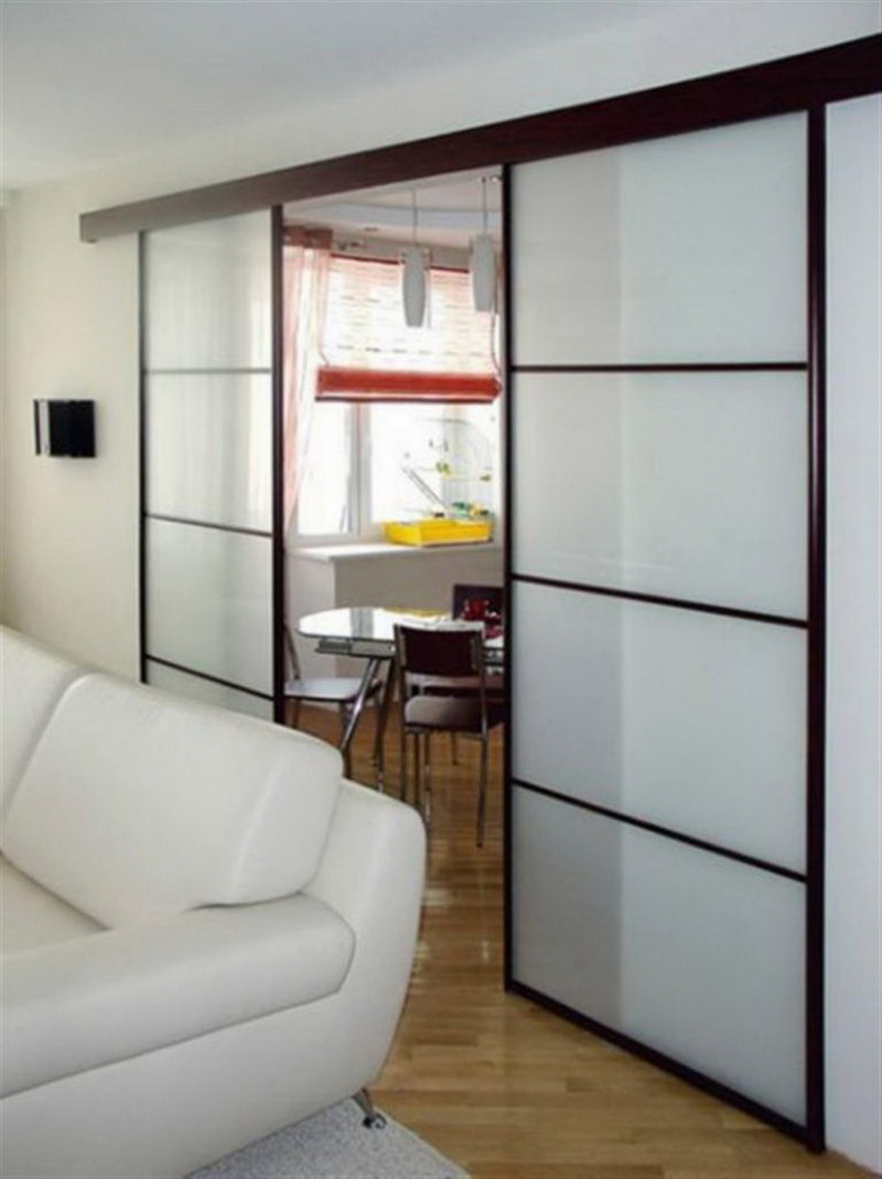 Pilihan terbaik adalah meletakkan kabinet atau rak di sana, yang akan bertindak sebagai pemisah visual bilik.