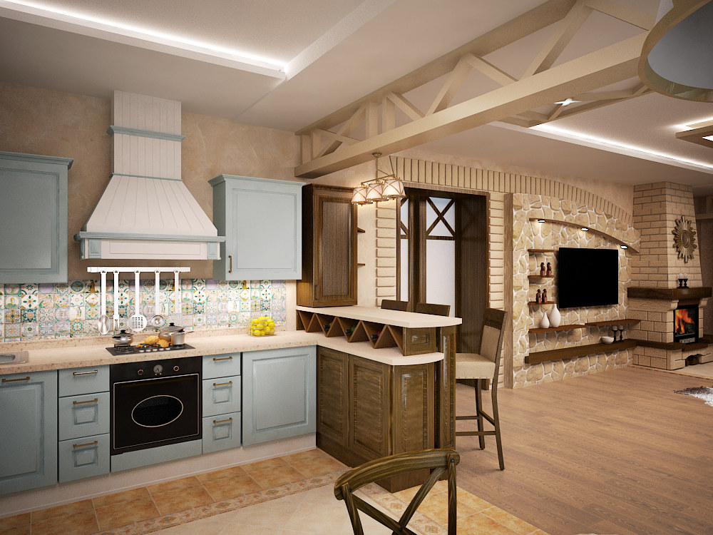 - Hud dapur. Hud range moden yang berkuasa adalah prasyarat dalam mewujudkan kawasan bersama untuk memasak dan tempat untuk menerima tetamu, bersantai.