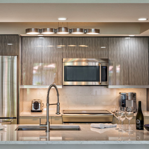Banyak pengeluar perabot dapur menyediakan pilihan memasang lampu di bahagian bawah kabinet dinding.