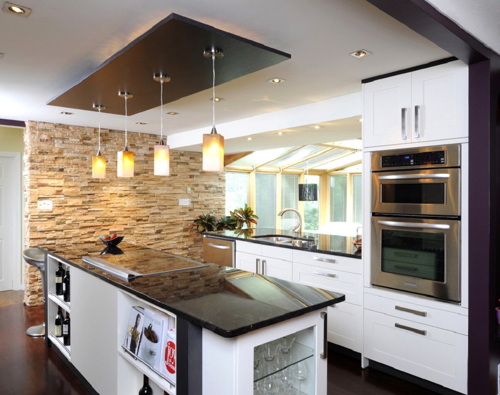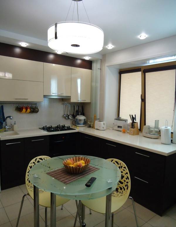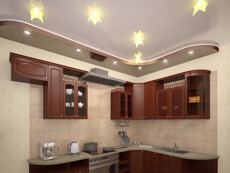 Pencahayaan dapur yang betul, walaupun bilik kecil, adalah pencahayaan pelbagai peringkat
