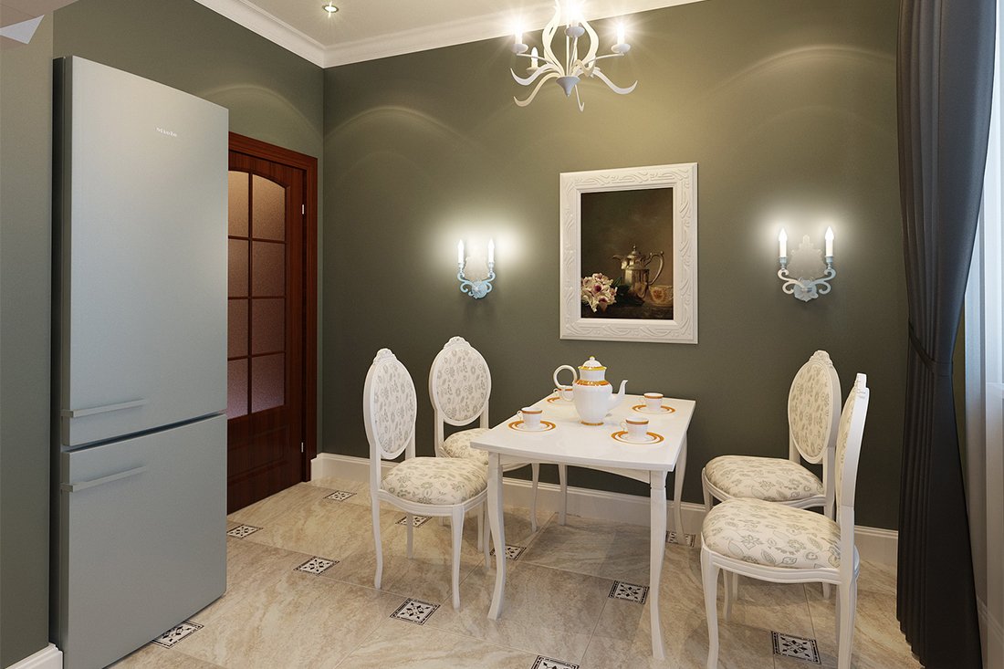 Peralatan elektrik untuk ruang makan dipilih berdasarkan penempatan meja.