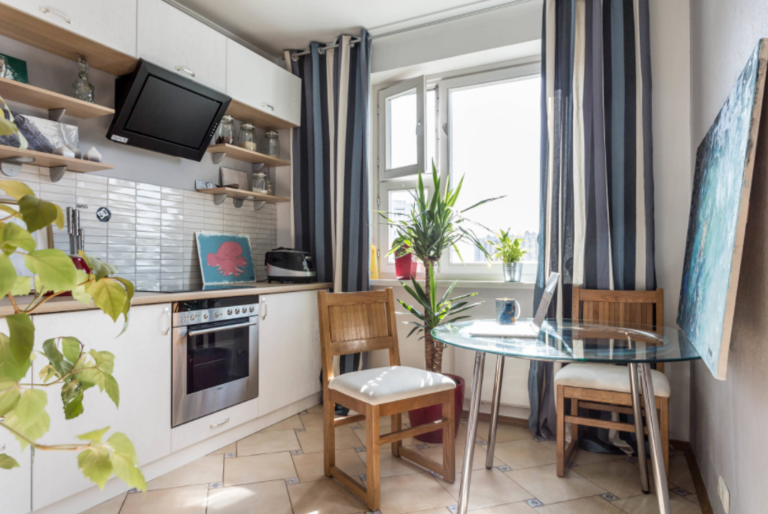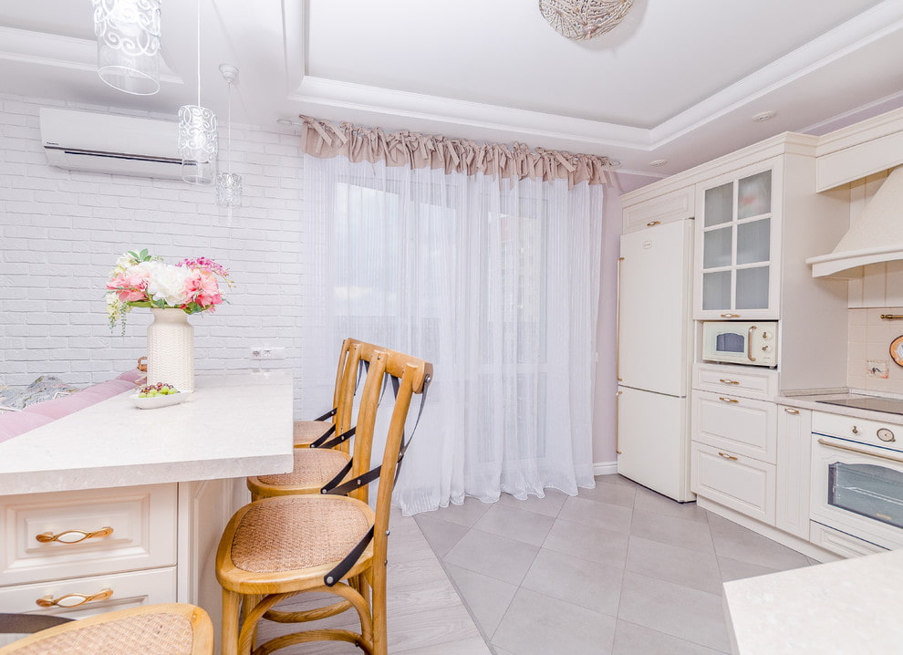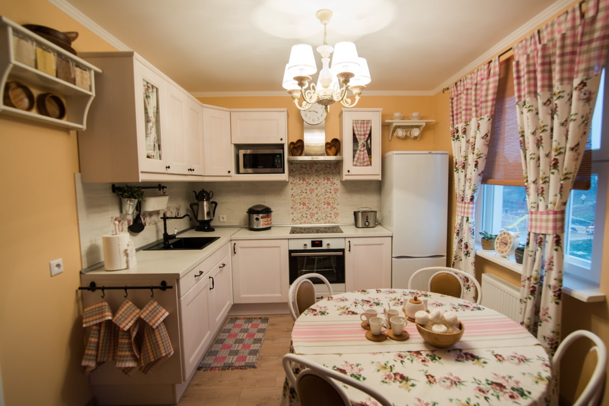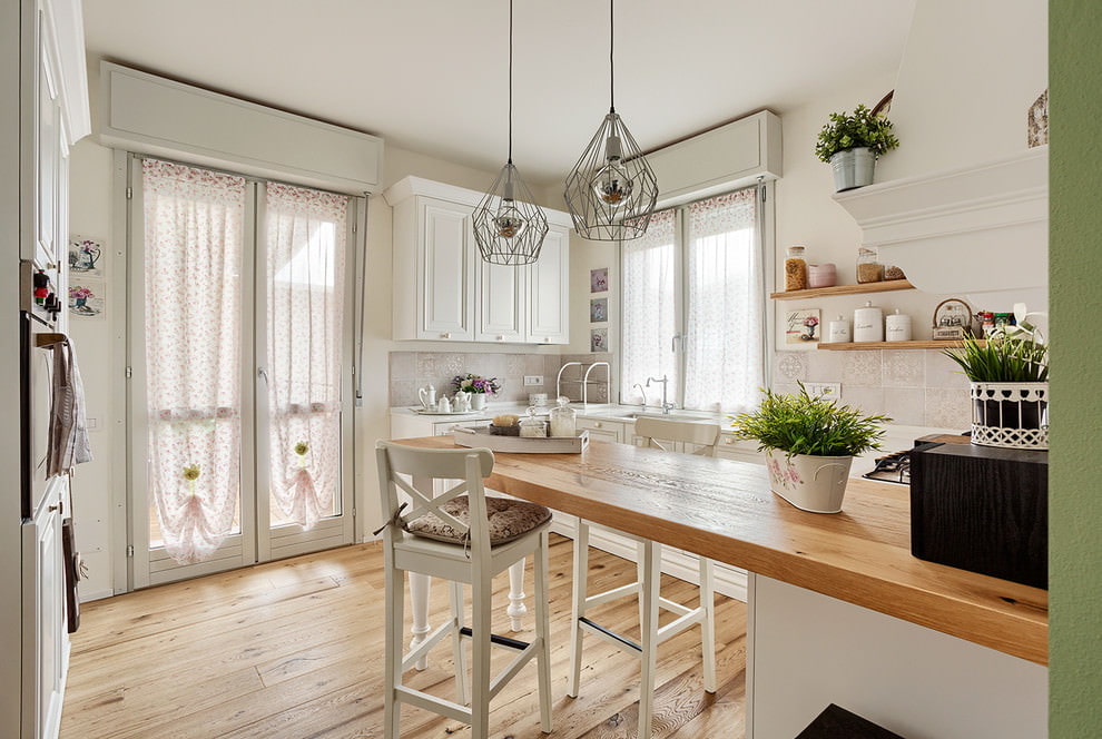 Apabila memilih langsir untuk gaya dapur Provence, cuba mencari keseimbangan antara keindahan dan kepraktisan.