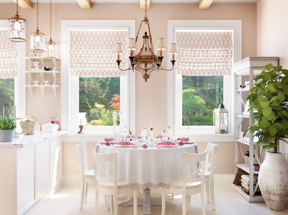 Dengan reka bentuk, hampir semua jenis tirai moden sesuai untuk gaya Provencal: