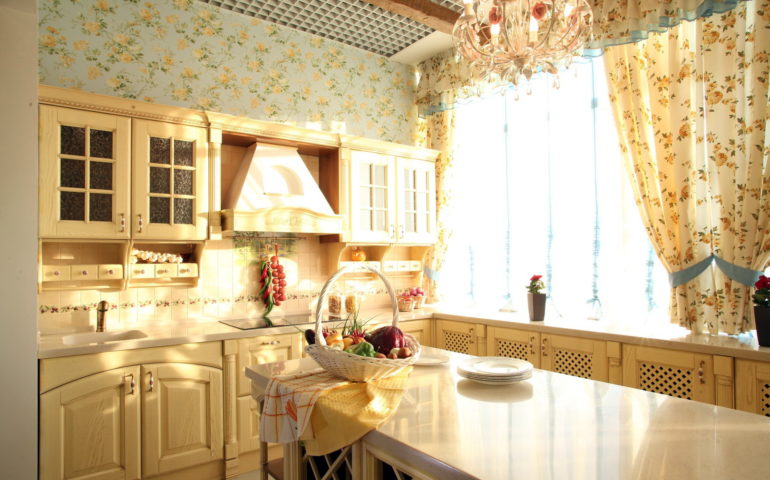 Dapur secara tradisinya lebih kecil daripada seluruh bilik. Oleh itu, apabila memilih hiasan, anda perlu ingat tentang pencahayaan, berusaha untuk mengekalkan kelantangan dan kelapangan. Adalah penting untuk mempertimbangkan bahawa di sebelah dapur dan tenggelam kain dengan cepat menjadi kotor, langsir akan sering dibasuh. Lebih baik memilih bahan dengan perlindungan terhadap peningkatan pencemaran. Tidak semua gaya sesuai untuk kawasan berfungsi seperti itu, Provence adalah salah satu daripada mereka.